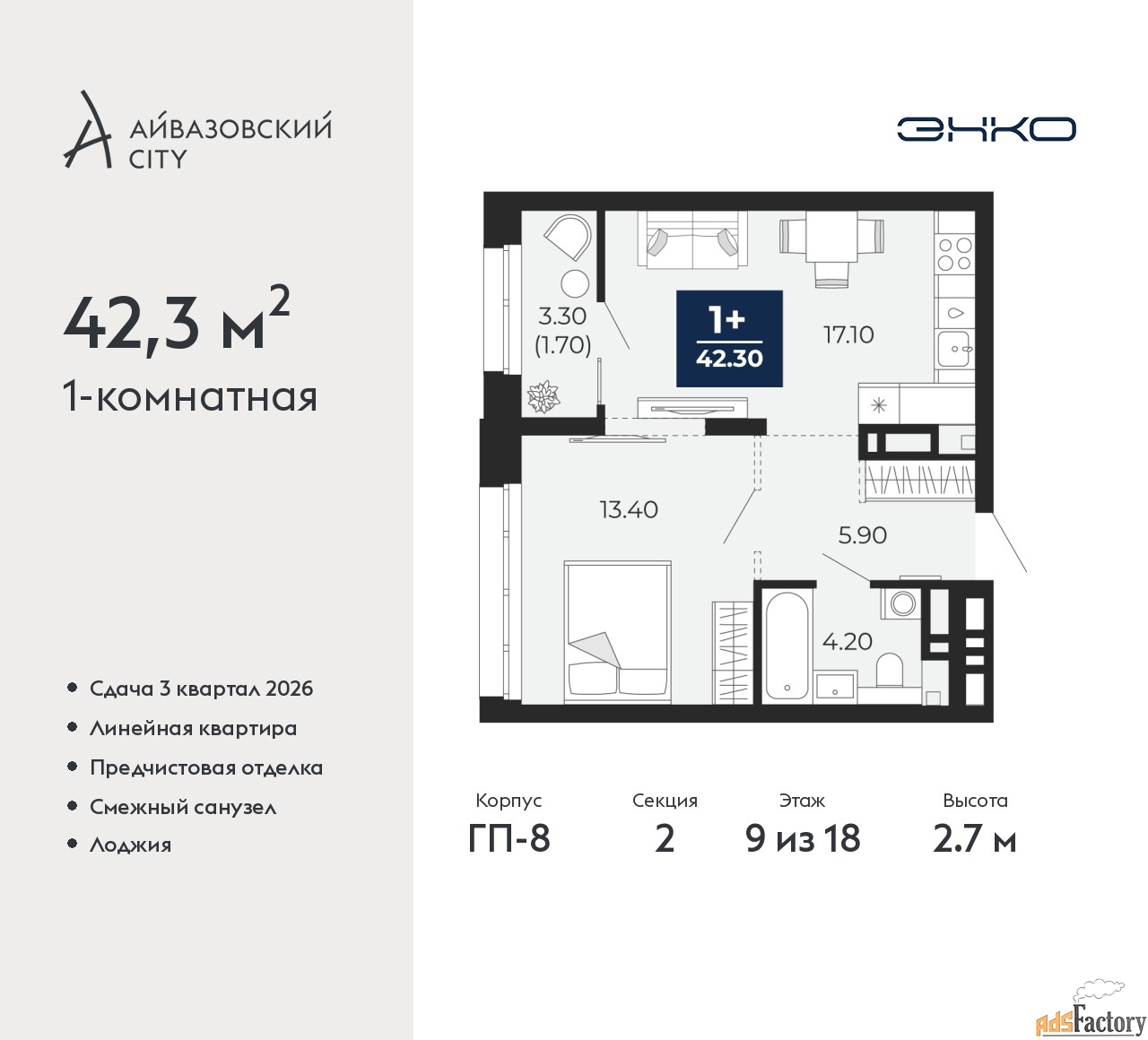 | Общая площадь (кв.м) | 42.3 |