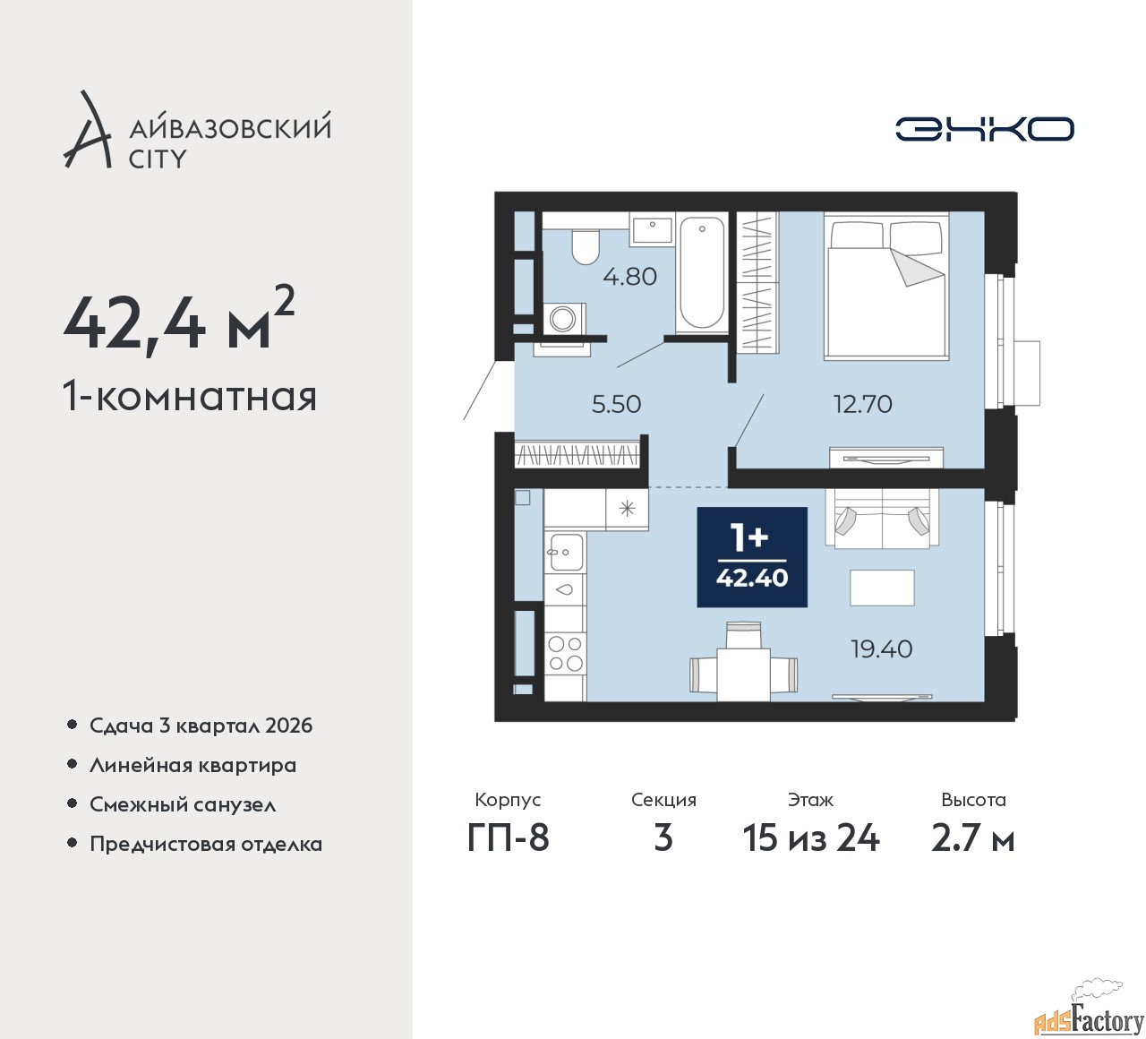| Общая площадь (кв.м) | 42.4 |