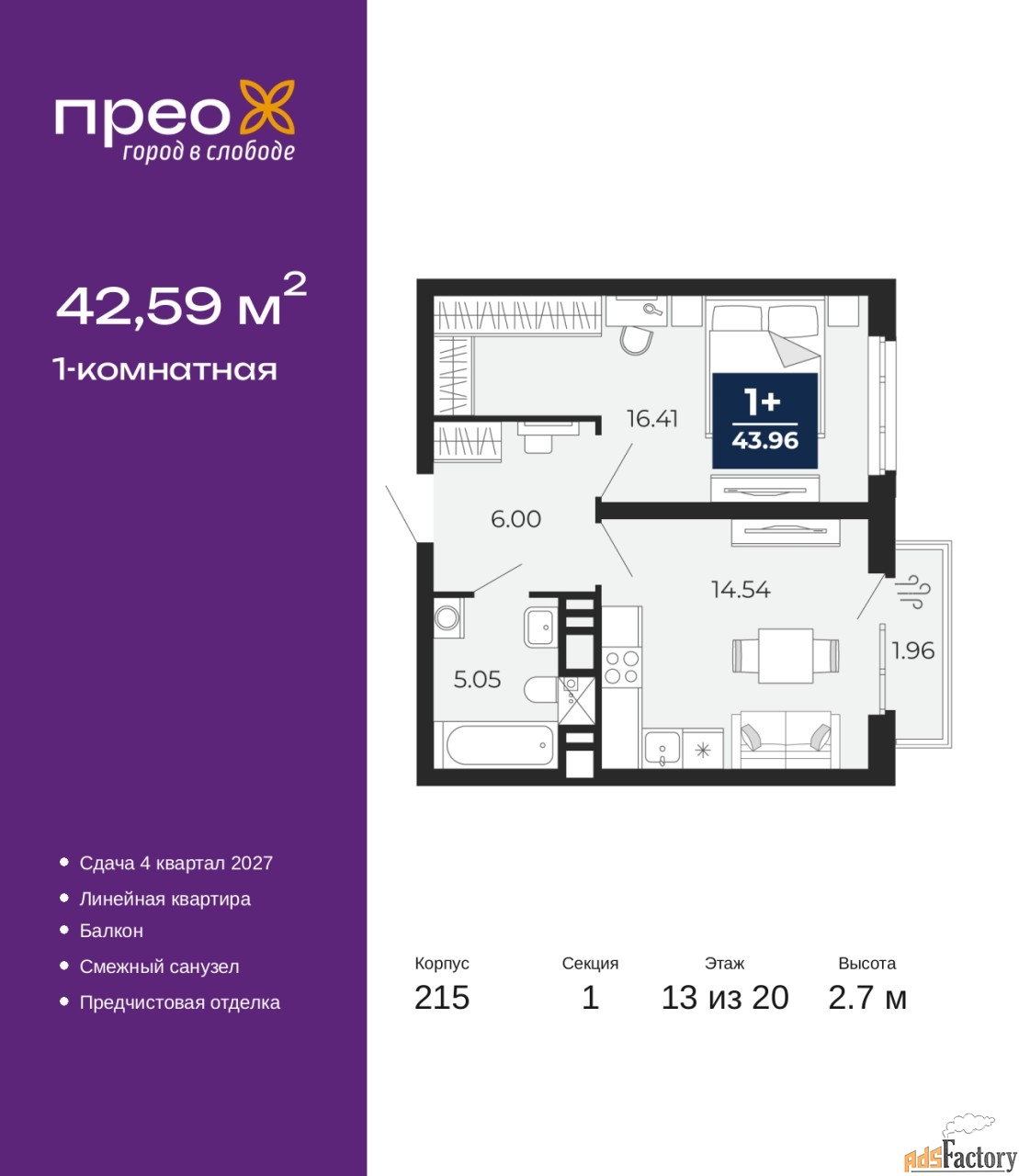 | Общая площадь (кв.м) | 42.59 |