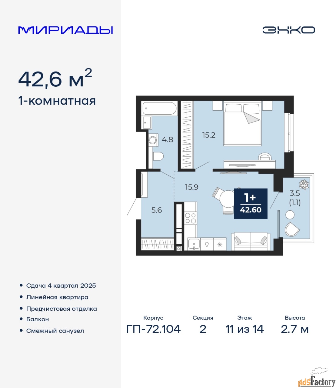 | Общая площадь (кв.м) | 42.6 |