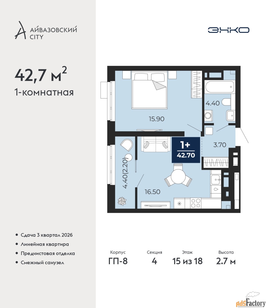 | Общая площадь (кв.м) | 42.7 |