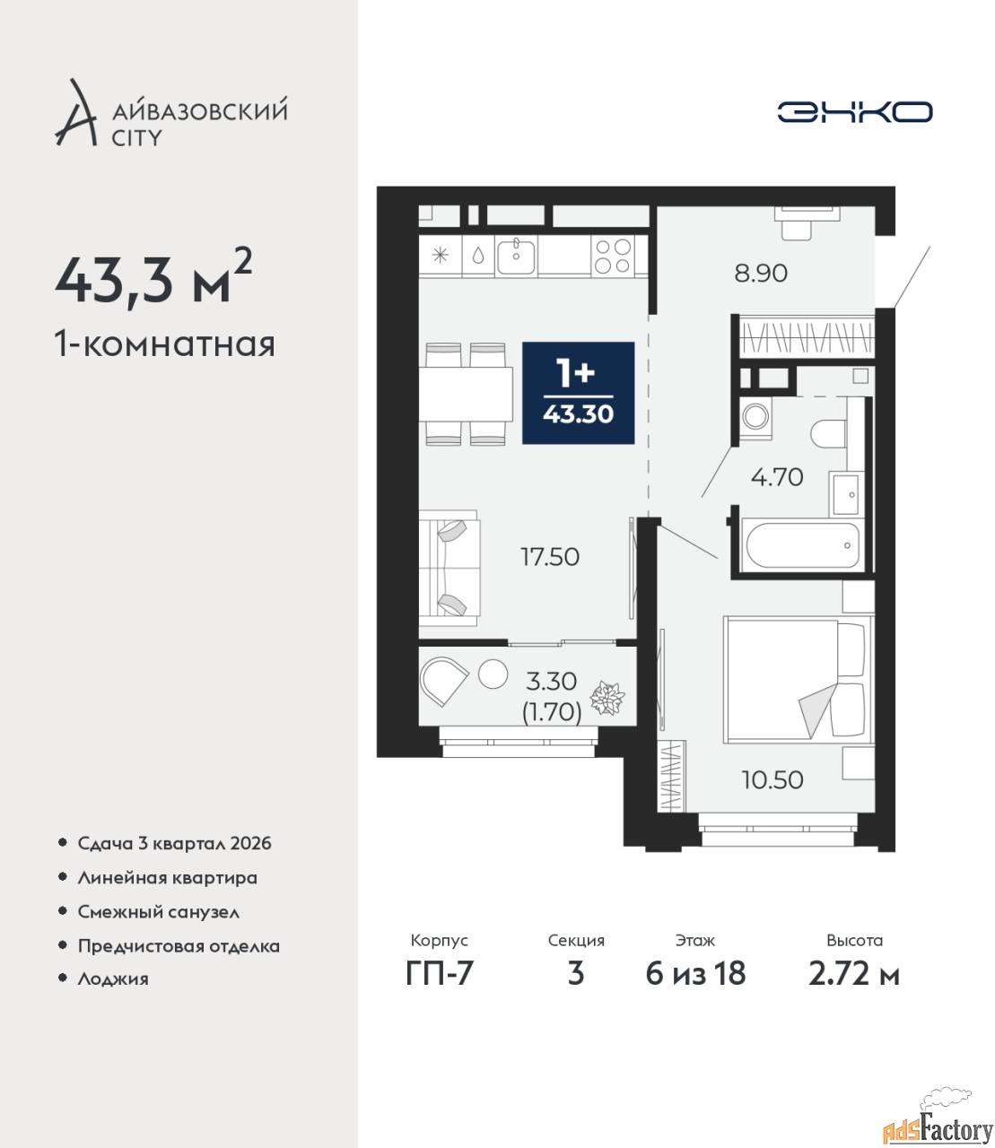 | Общая площадь (кв.м) | 43.3 |