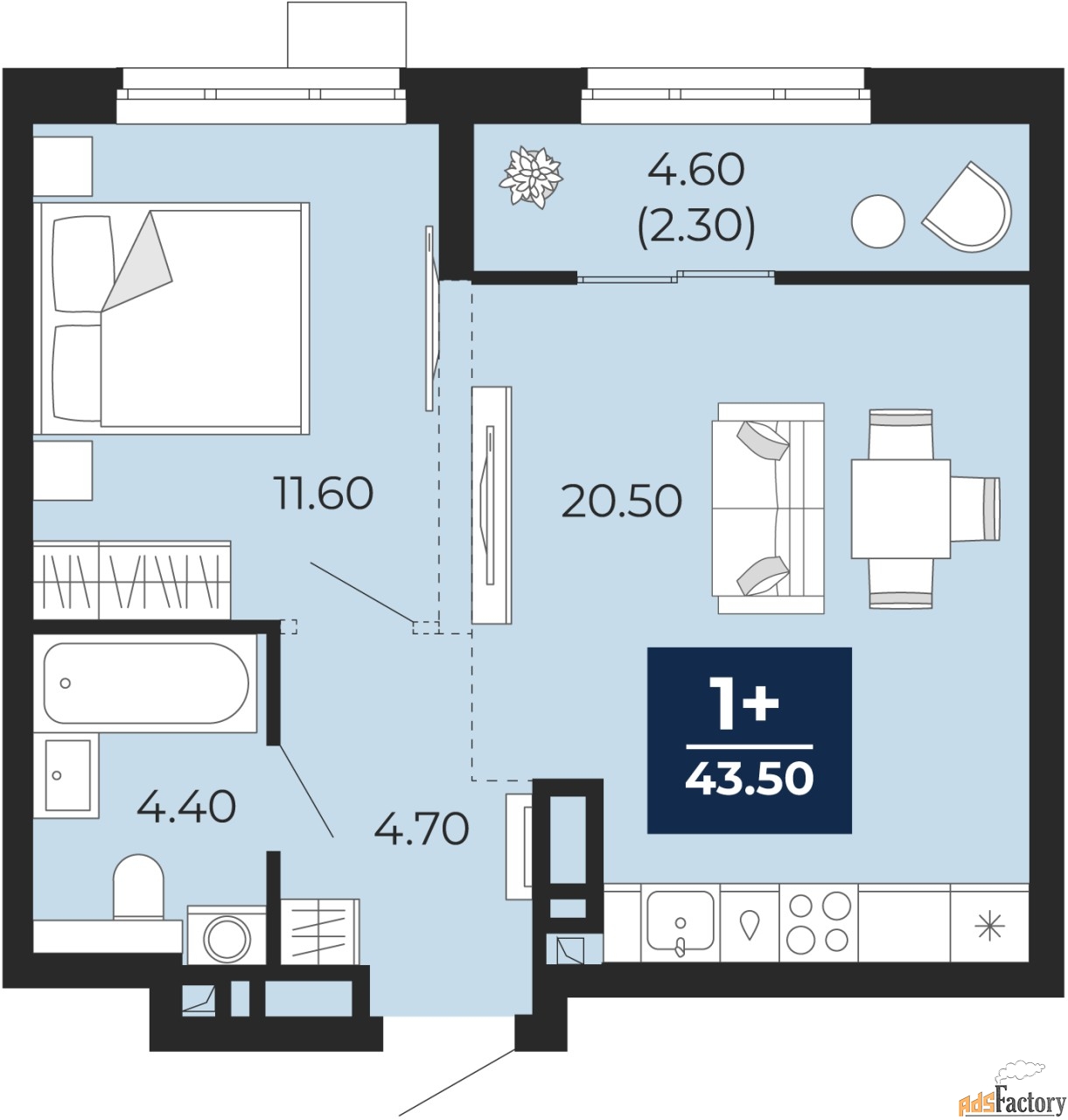 | Общая площадь (кв.м) | 43.5 |