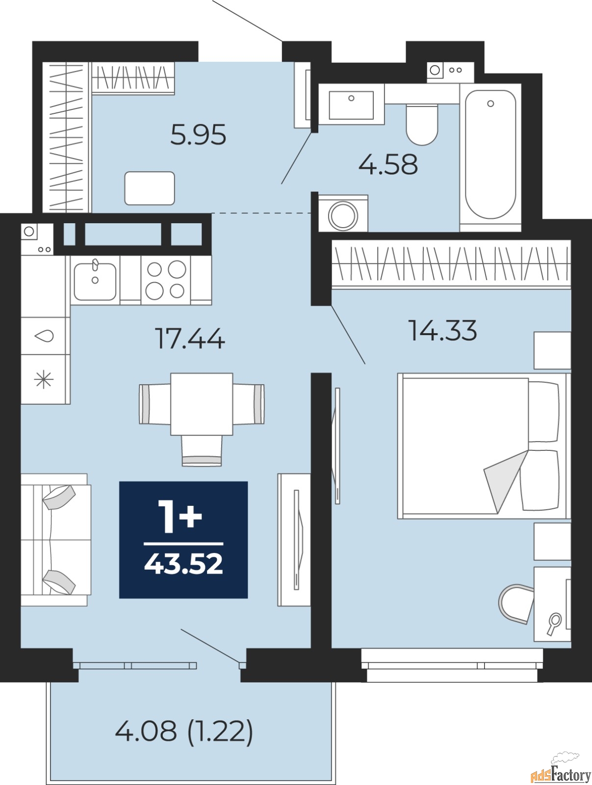 | Общая площадь (кв.м) | 43.52 |