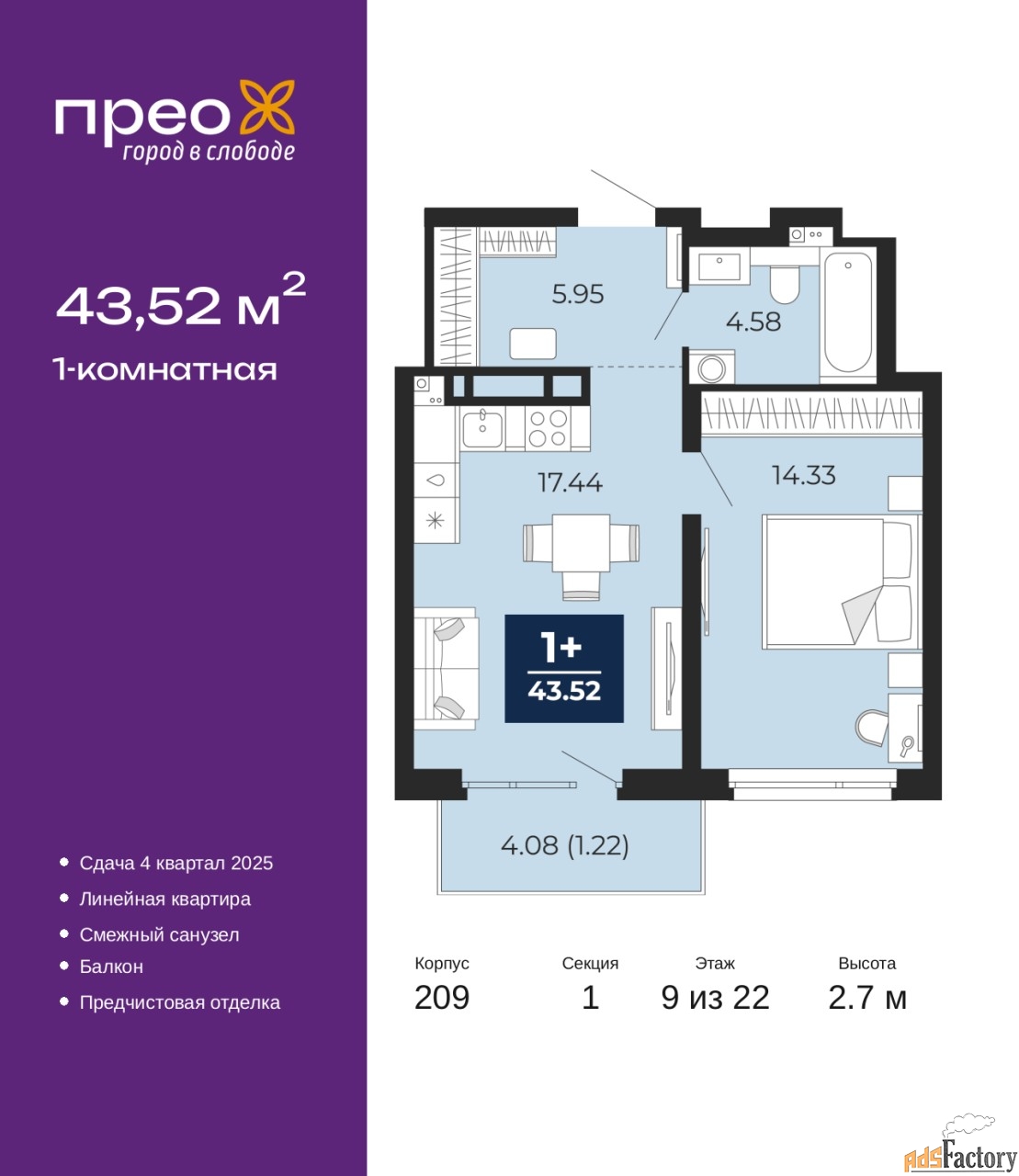 | Общая площадь (кв.м) | 43.52 |
