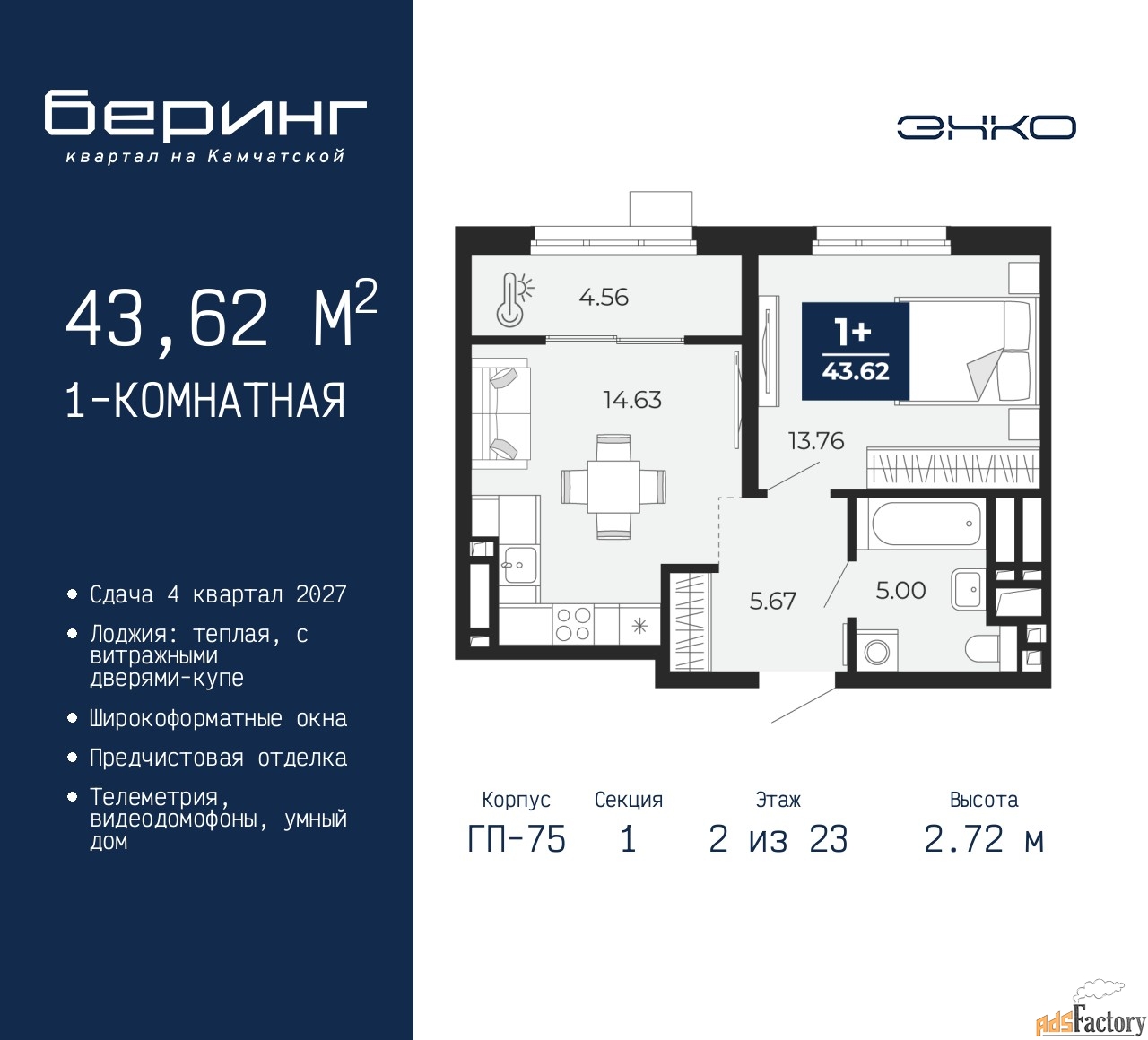 | Общая площадь (кв.м) | 43.62 |