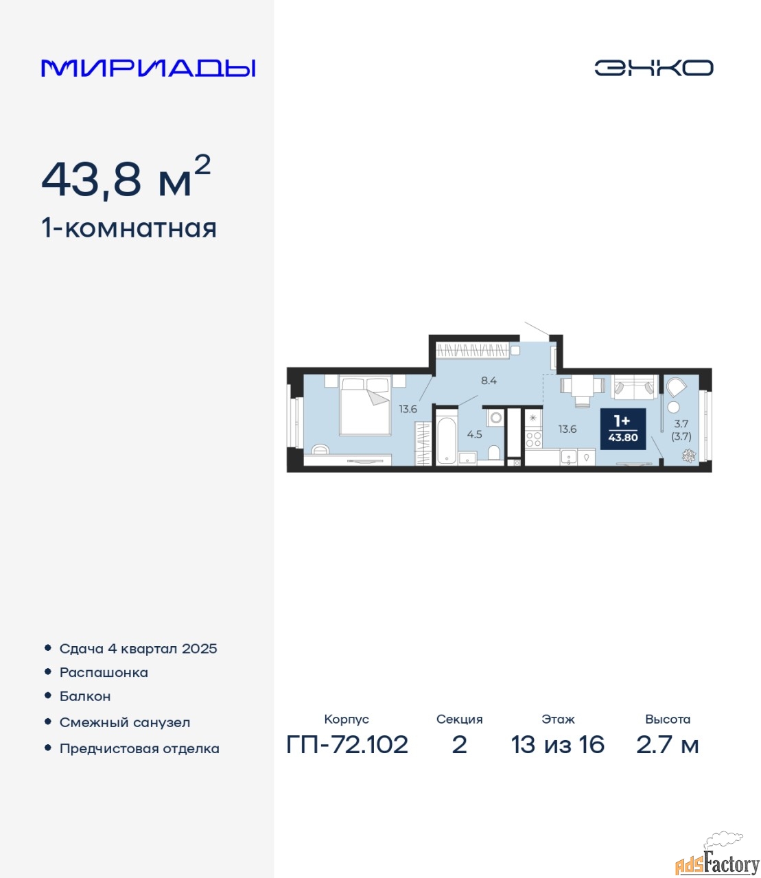 | Общая площадь (кв.м) | 43.8 |