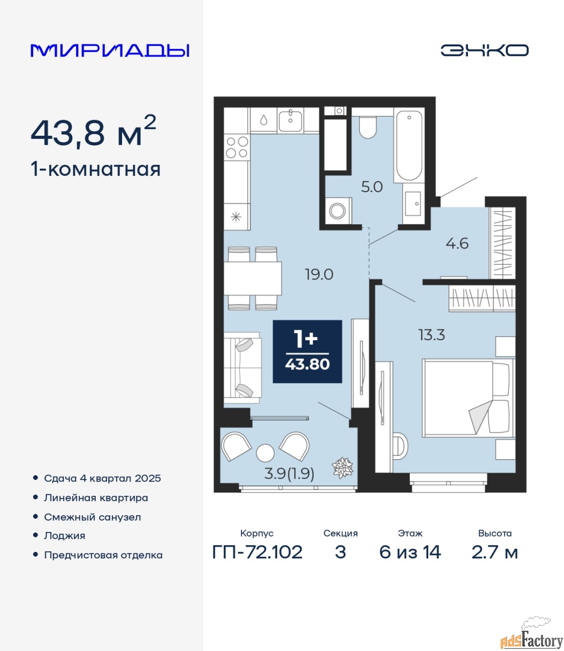 | Общая площадь (кв.м) | 43.8 |