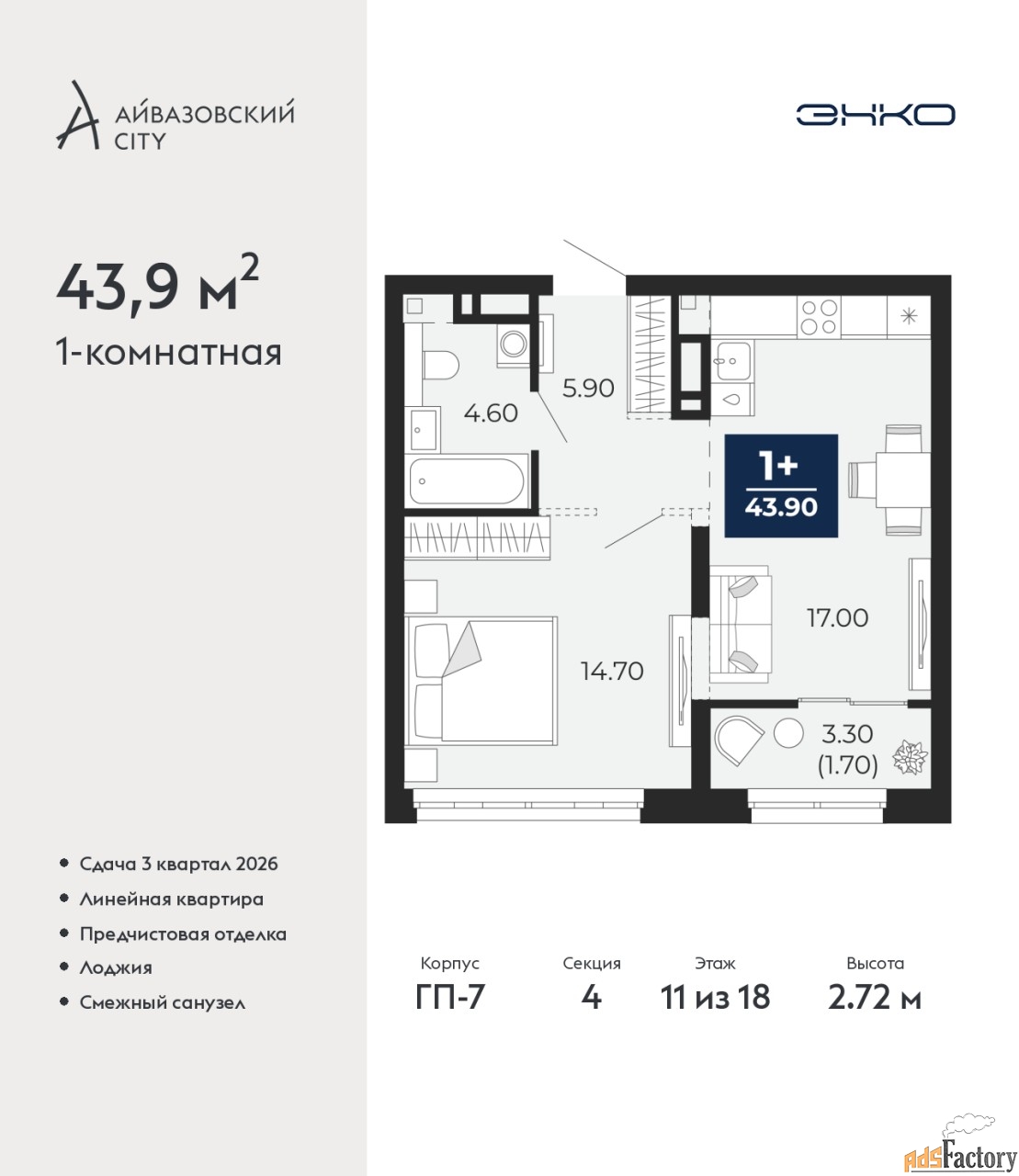 | Общая площадь (кв.м) | 43.9 |