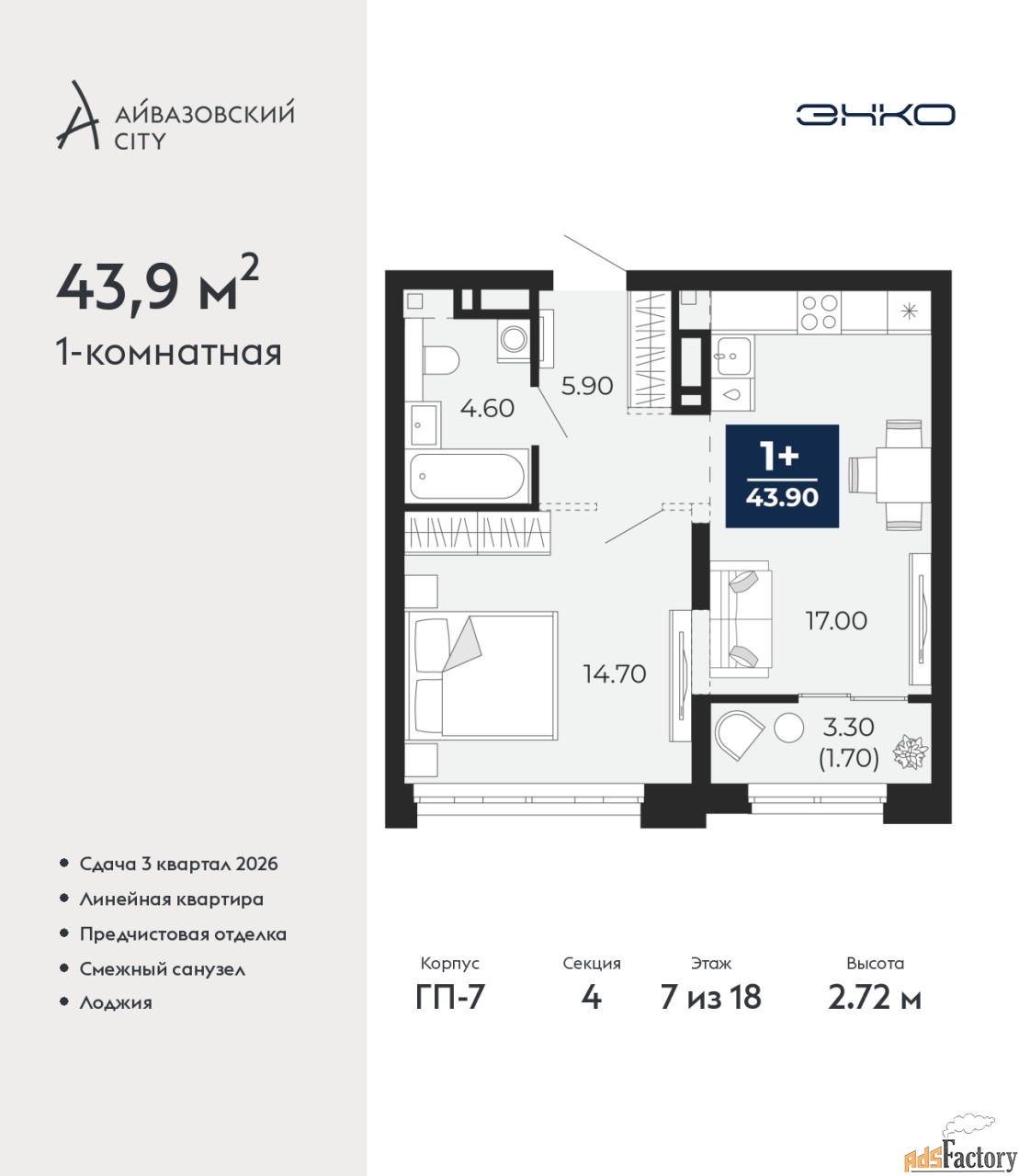 | Общая площадь (кв.м) | 43.9 |