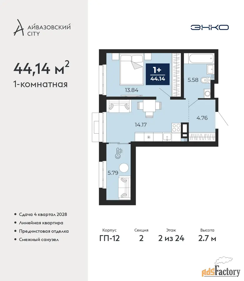 | Общая площадь (кв.м) | 44.14 |
