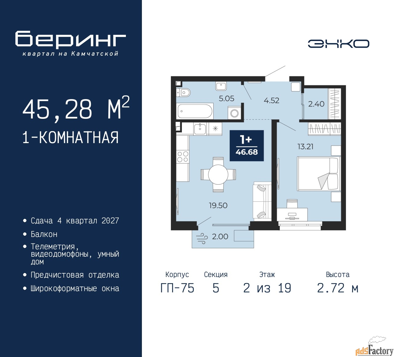 Дом монолитный, многоподъездный, переменной этажности, от 17 до 24 этажей. Квартира находится в 5-й секции высотой 19 этажей в корпусе ГП-75. На этаже 4 квартиры. В подъезде 2 пассажирских и 1 грузовой лифт. Окончание строительства - 4 квартал 2027 года. Оформление сделки по договору долевого участия.