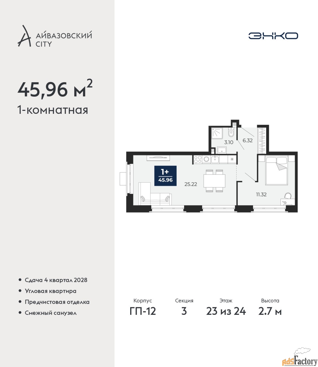 | Общая площадь (кв.м) | 45.96 |