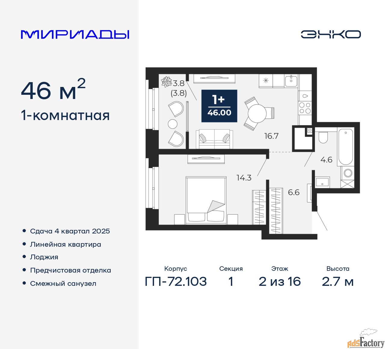 | Общая площадь (кв.м) | 46 |