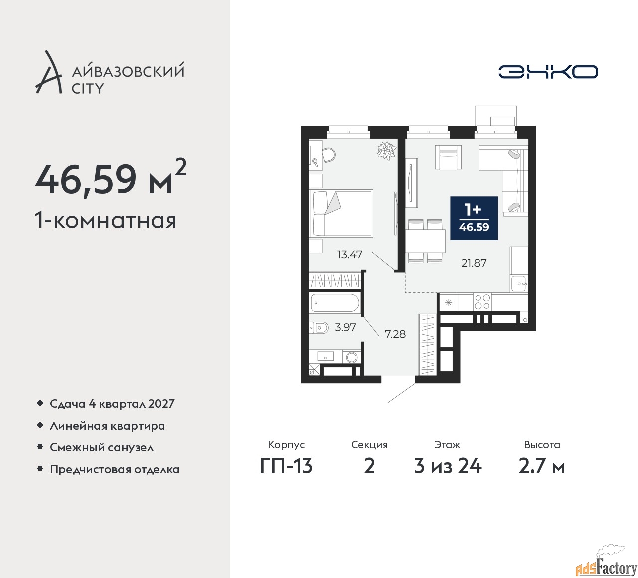 | Общая площадь (кв.м) | 46.59 |