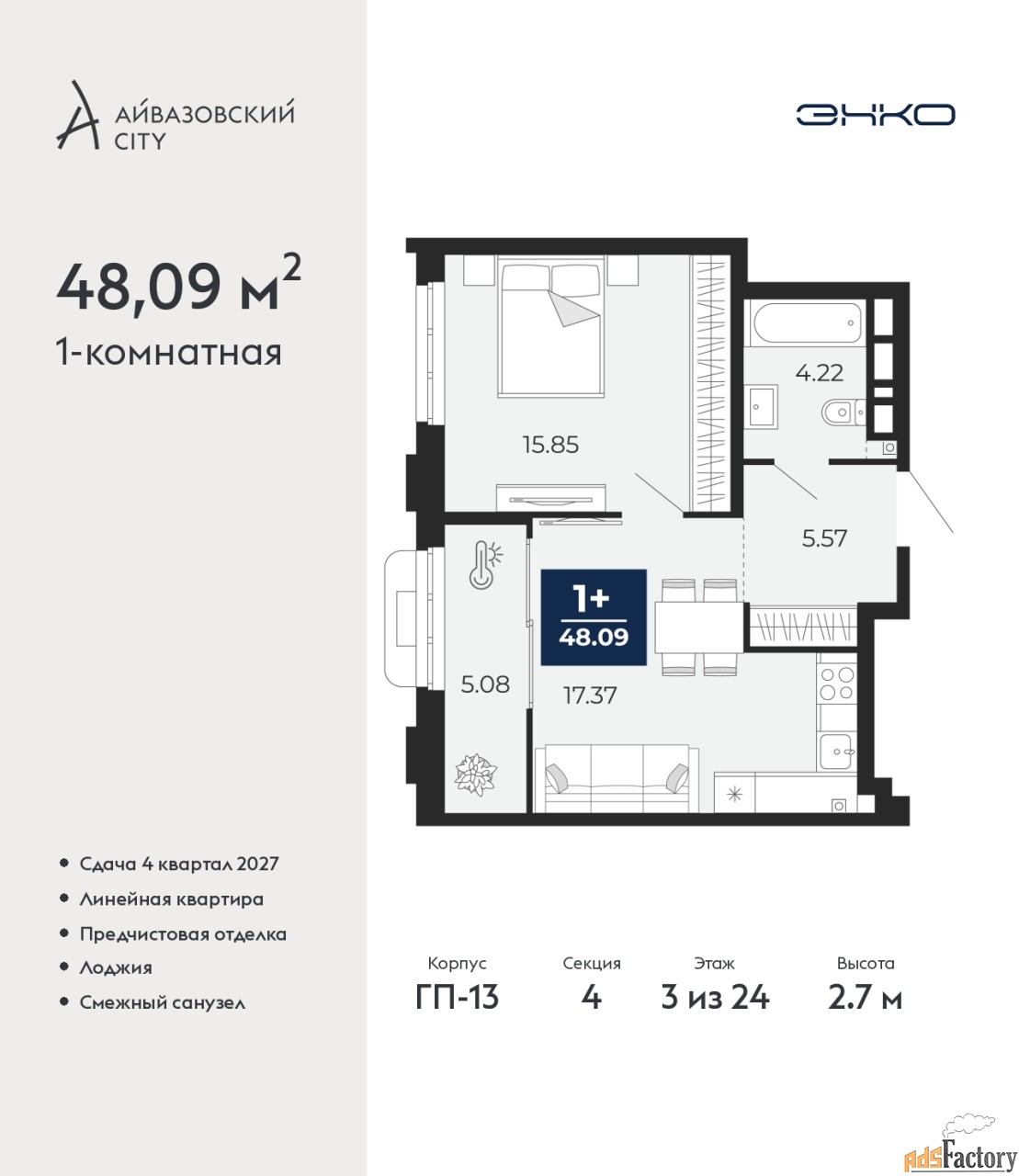 | Общая площадь (кв.м) | 48.09 |