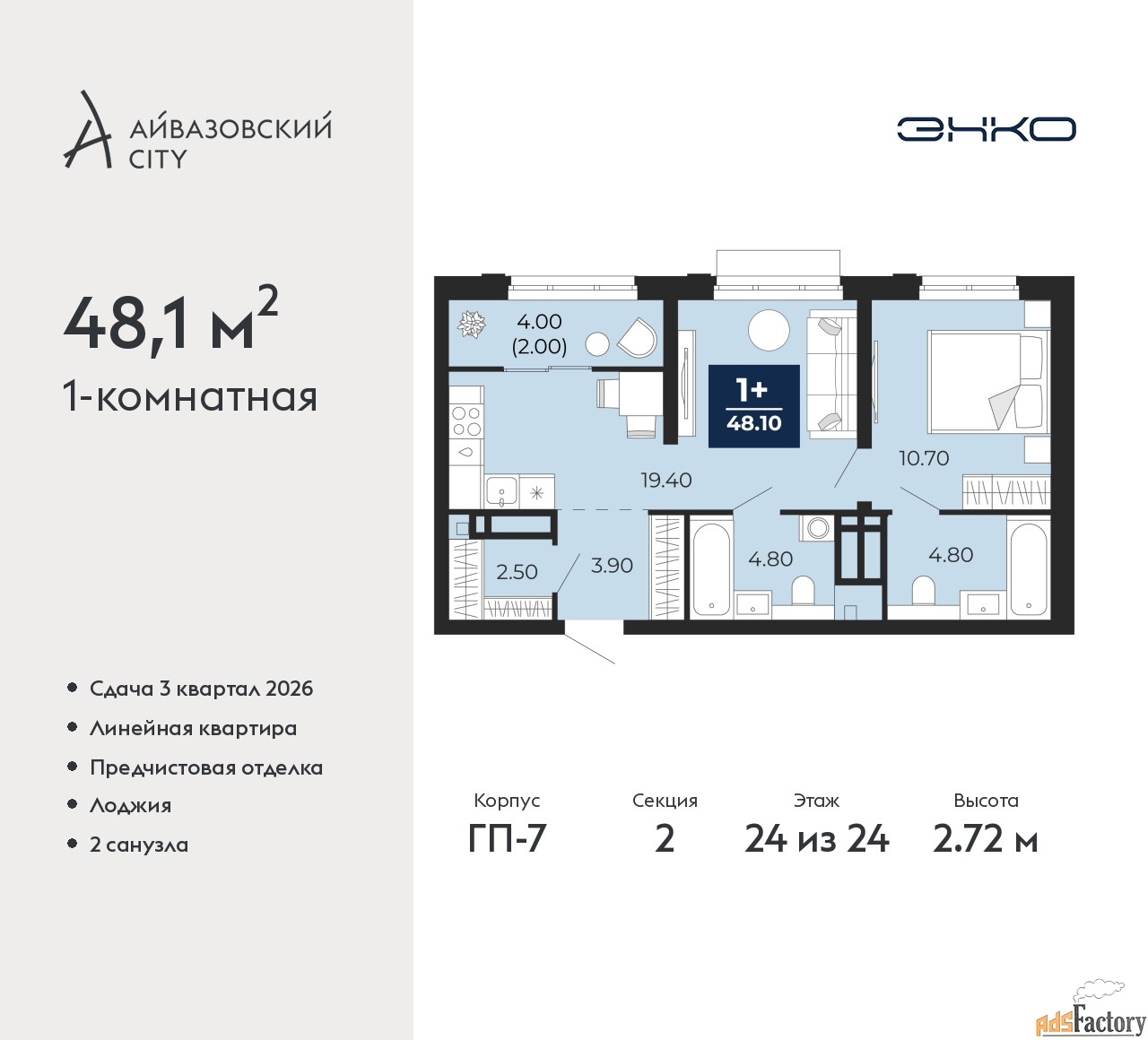 | Общая площадь (кв.м) | 48.1 |