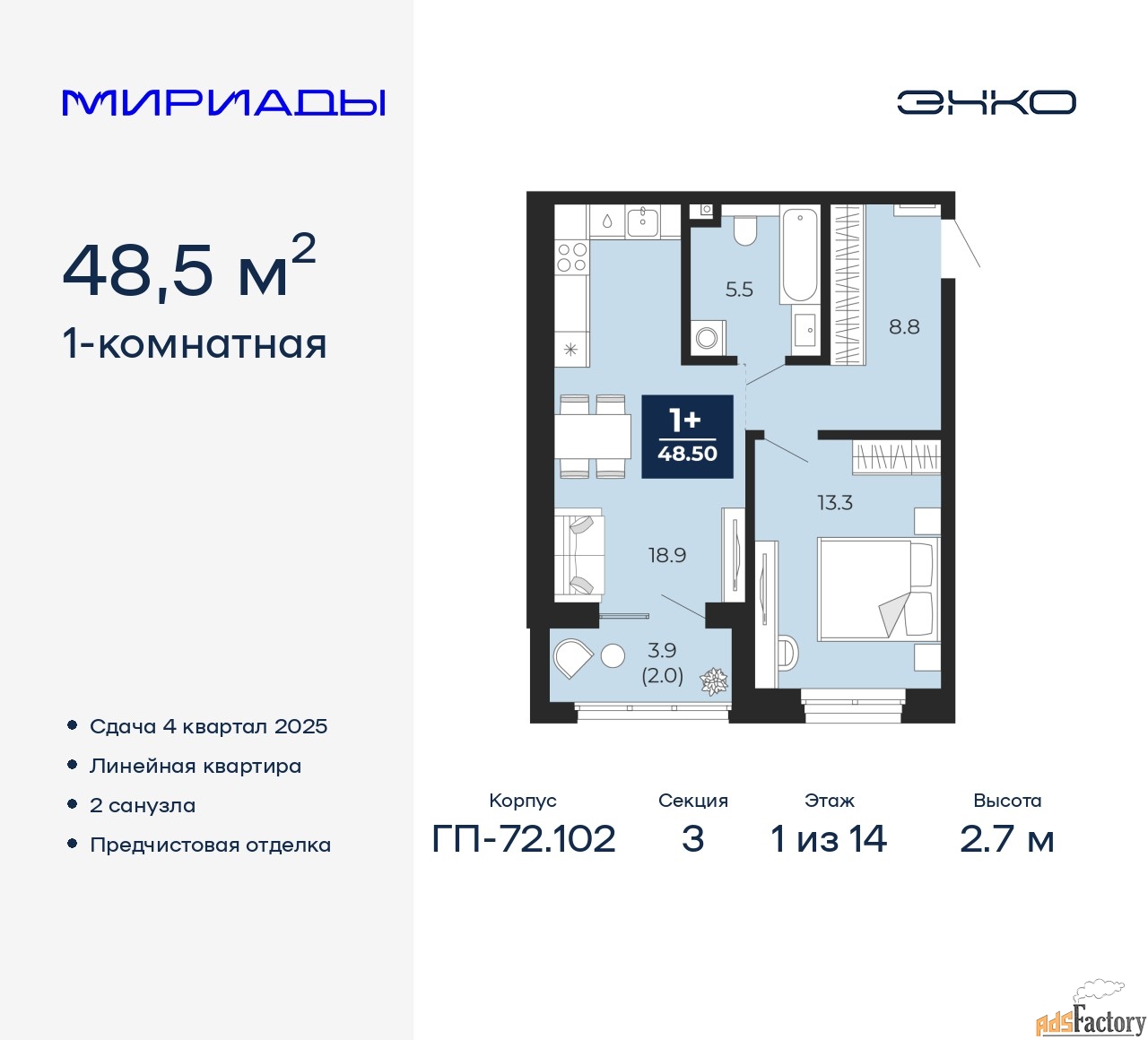 | Общая площадь (кв.м) | 48.5 |