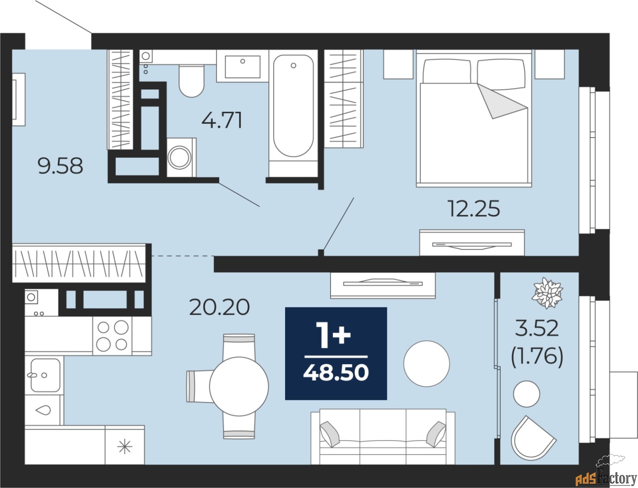 | Общая площадь (кв.м) | 48.5 |