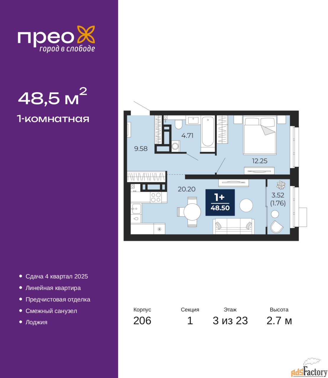 | Общая площадь (кв.м) | 48.5 |