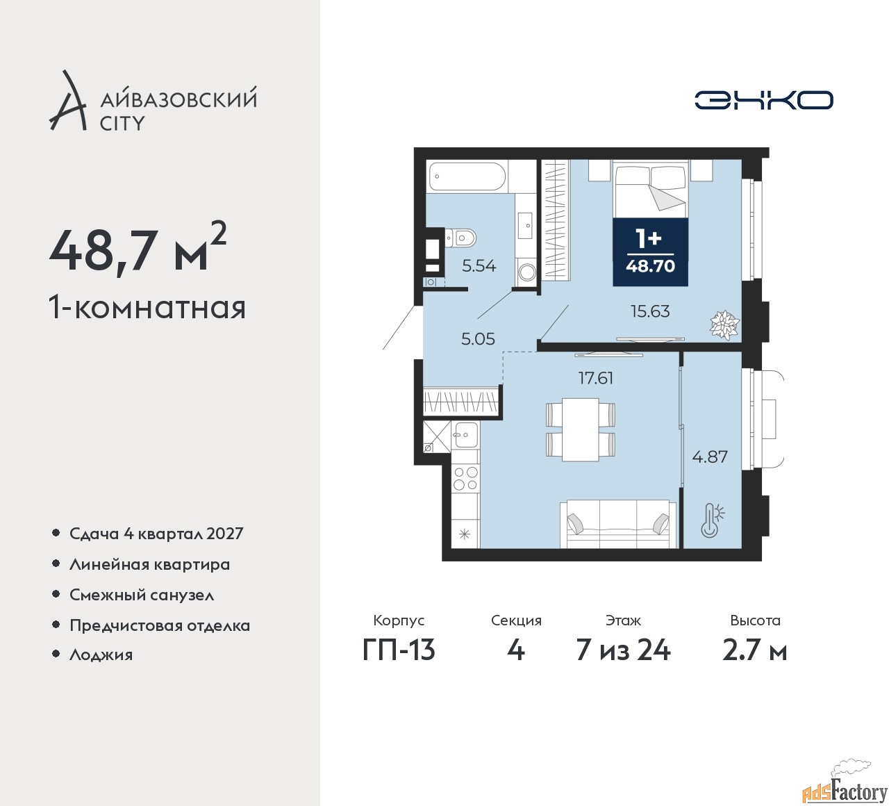 Дом монолитный, многоподъездный, высотой 24 этажа. Квартира находится в 4-й секции в корпусе ГП-13. На этаже 6 квартир. В подъезде 1 пассажирский и 1 грузовой лифт. Окончание строительства - 4 квартал 2027 года. Оформление сделки по договору долевого участия.