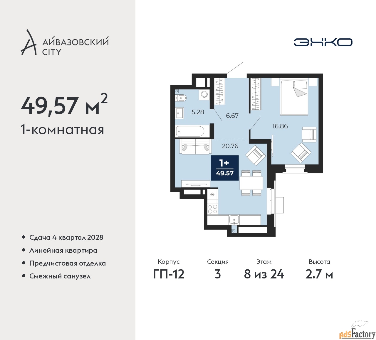 Дом монолитный, многоподъездный, высотой 24 этажа. Квартира находится в 3-й секции в корпусе ГП-12. На этаже 6 квартир. В подъезде 1 пассажирский и 1 грузовой лифт. Окончание строительства - 4 квартал 2028 года. Оформление сделки по договору долевого участия.