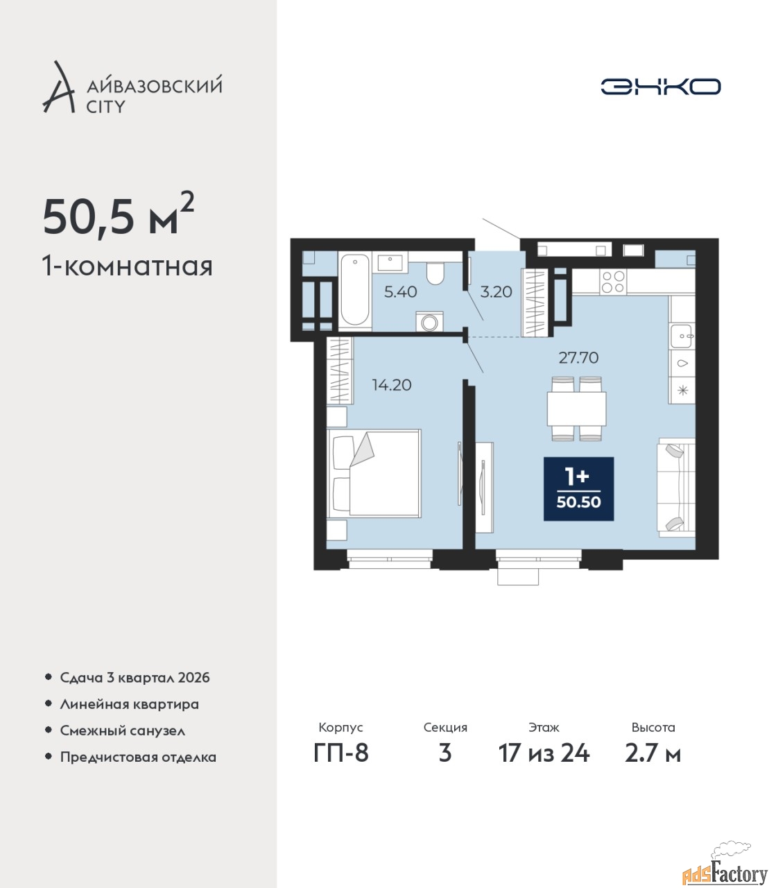 Дом монолитный, многоподъездный, переменной этажности, от 14 до 24 этажей. Квартира находится в 3-й секции высотой 24 этажа в корпусе ГП-8. На этаже 7 квартир. В подъезде 1 пассажирский и 1 грузовой лифт. Окончание строительства - 3 квартал 2026 года. Оформление сделки по договору долевого участия.