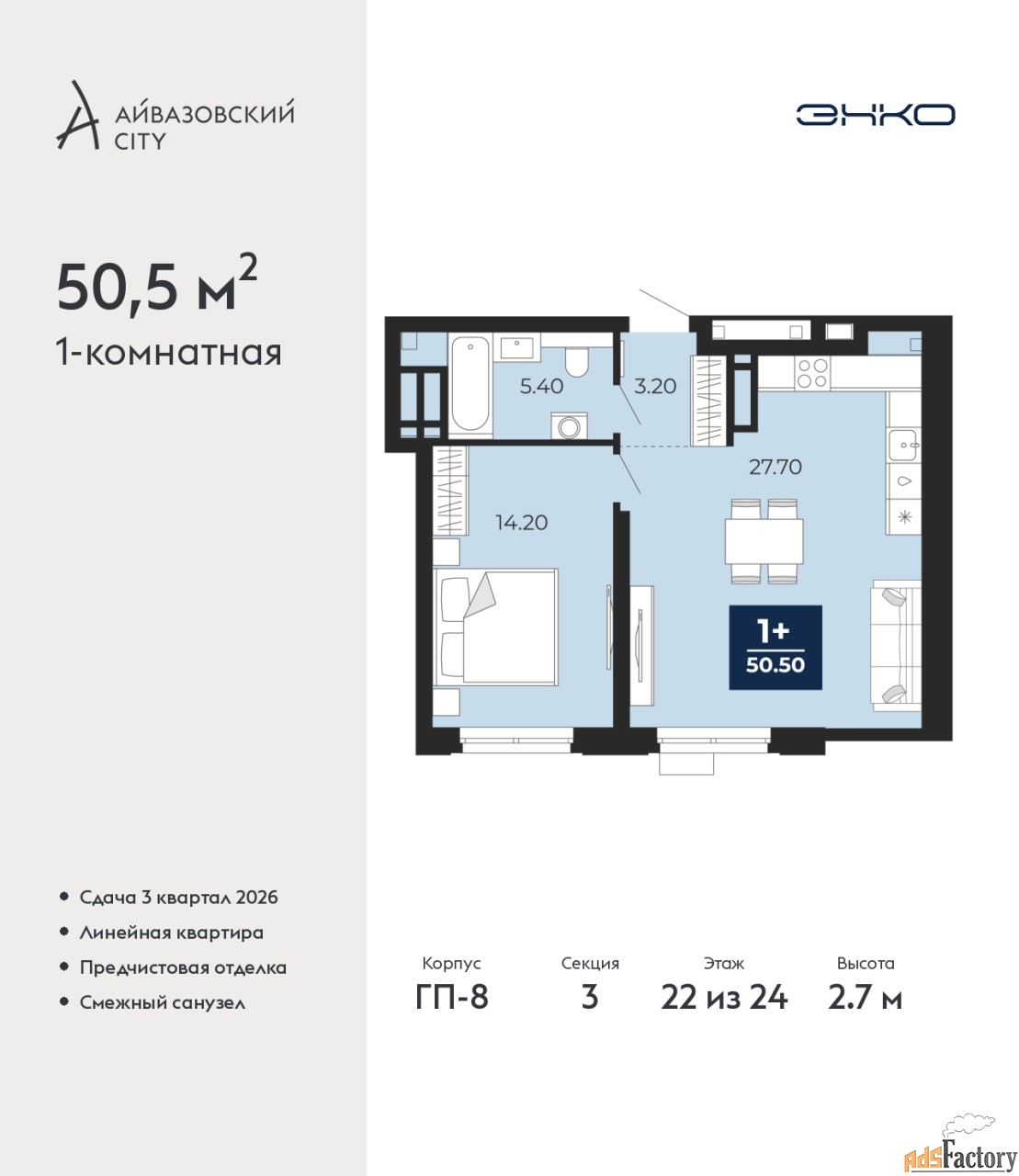 | Общая площадь (кв.м) | 50.5 |