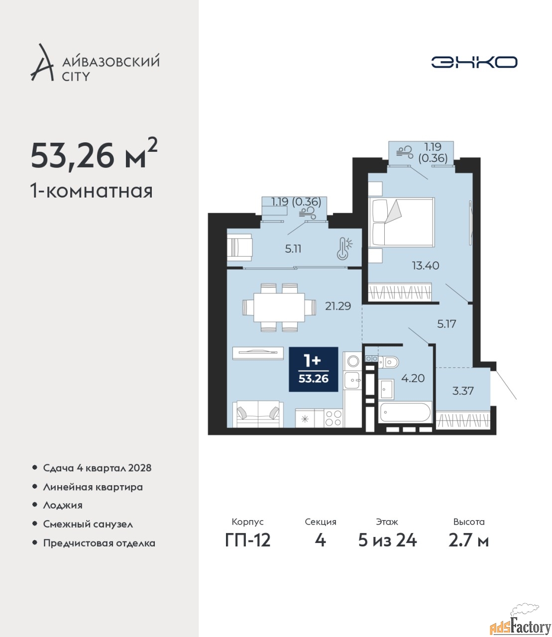 Дом монолитный, многоподъездный, высотой 24 этажа. Квартира находится в 4-й секции в корпусе ГП-12. На этаже 5 квартир. В подъезде 1 пассажирский и 1 грузовой лифт. Окончание строительства - 4 квартал 2028 года. Оформление сделки по договору долевого участия.