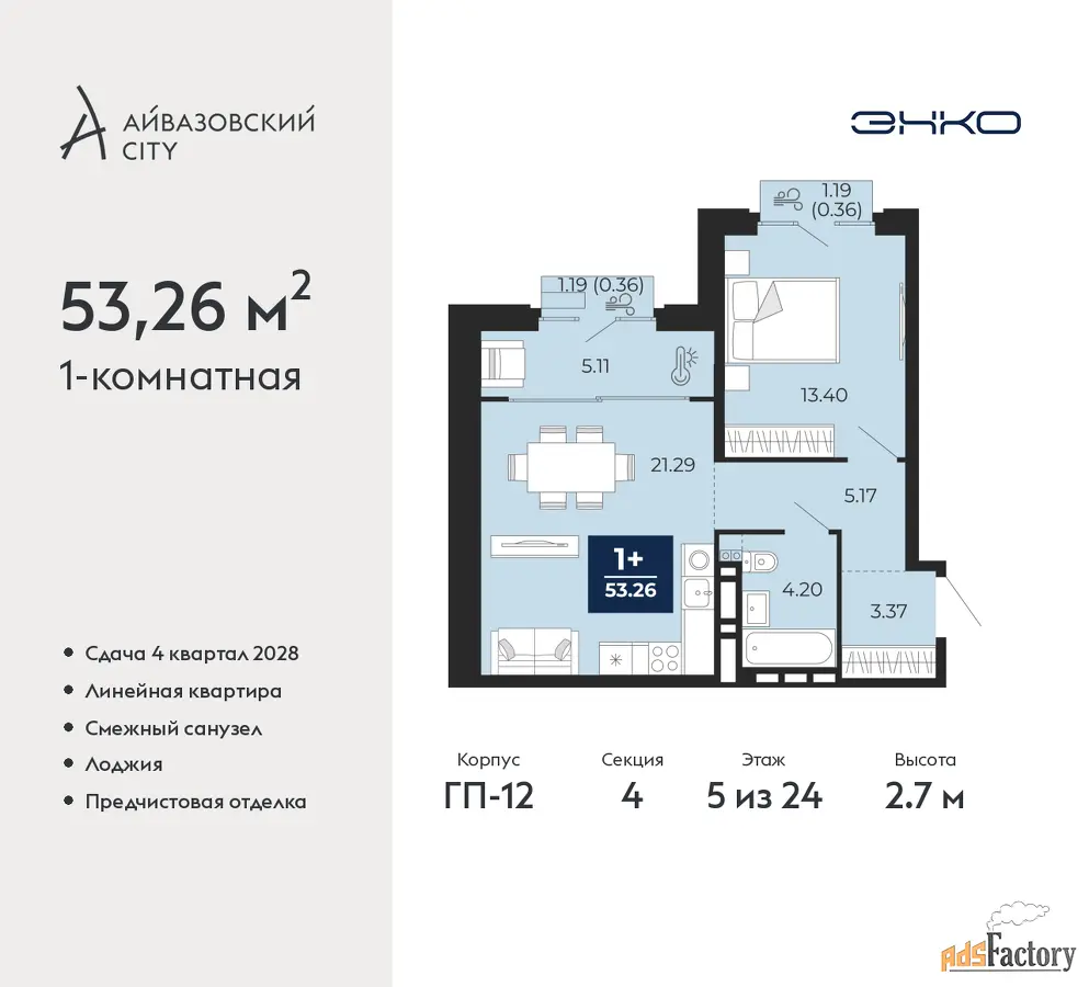 | Общая площадь (кв.м) | 53.26 |