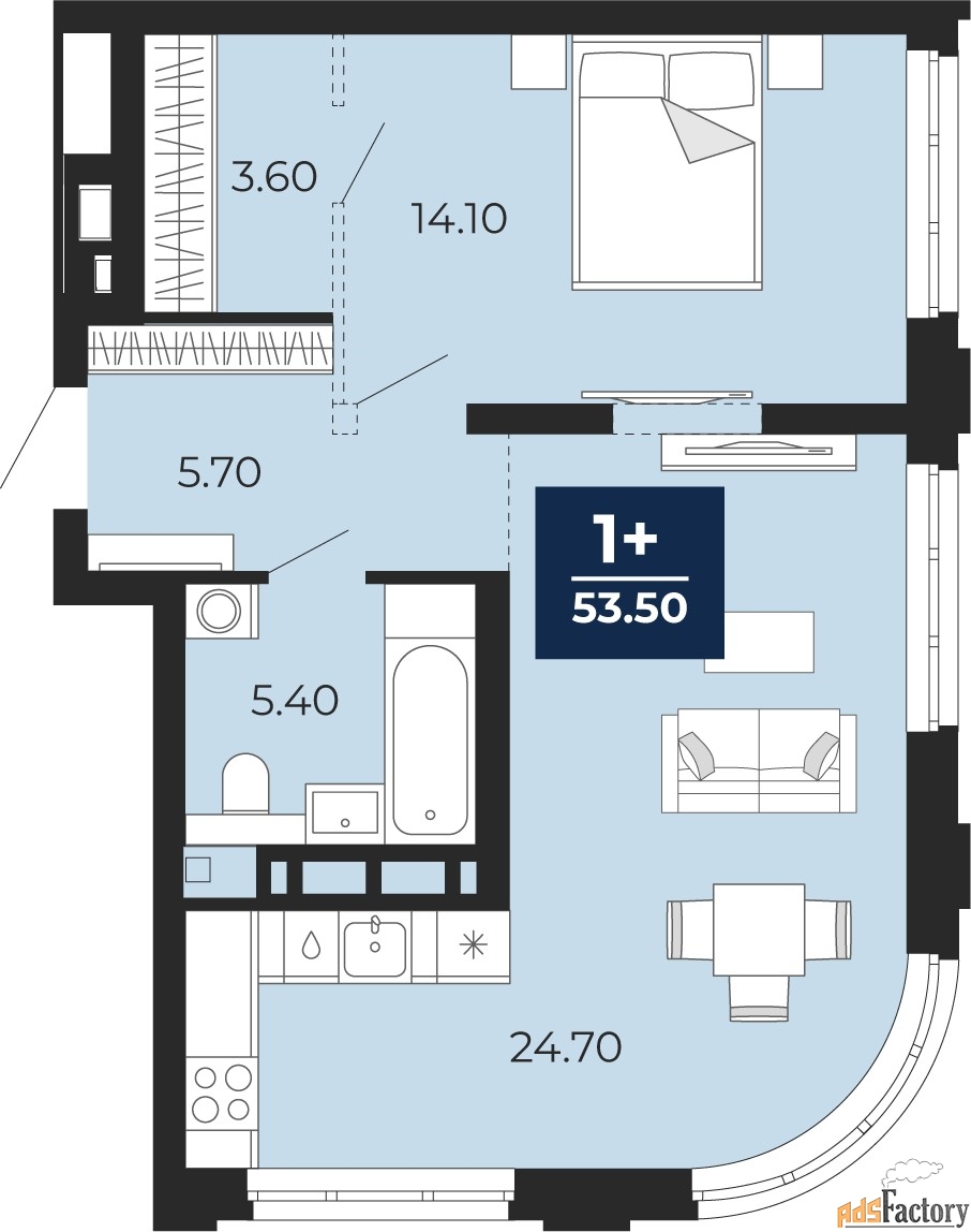 | Общая площадь (кв.м) | 53.5 |