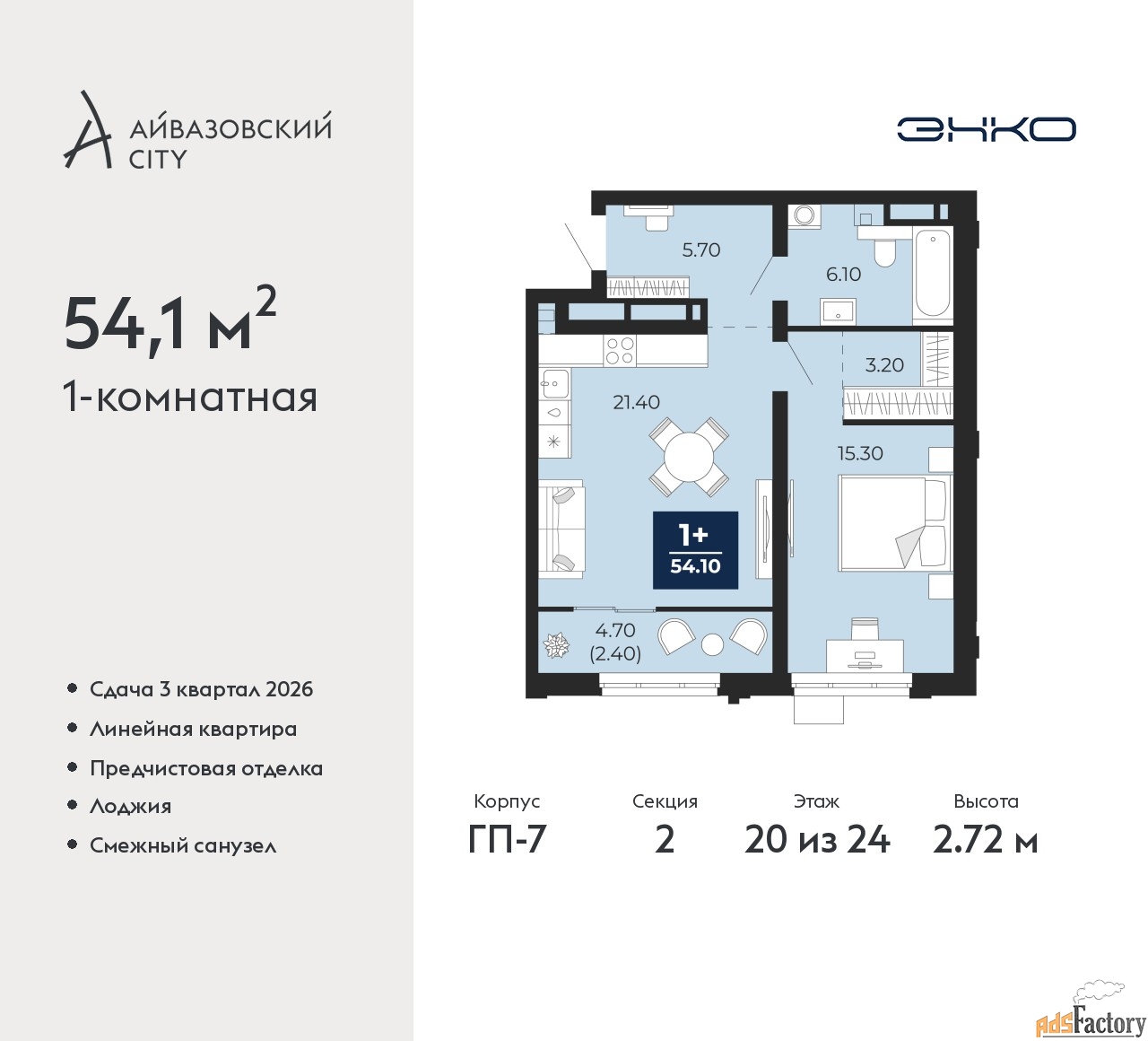 | Общая площадь (кв.м) | 54.1 |
