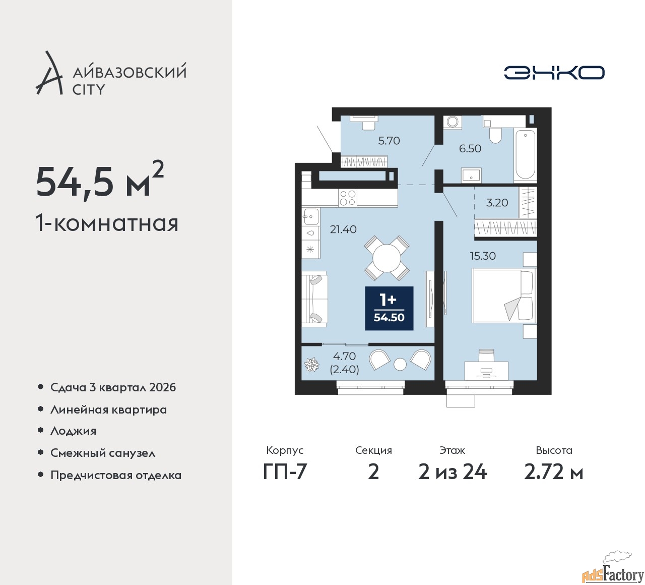 | Общая площадь (кв.м) | 54.5 |