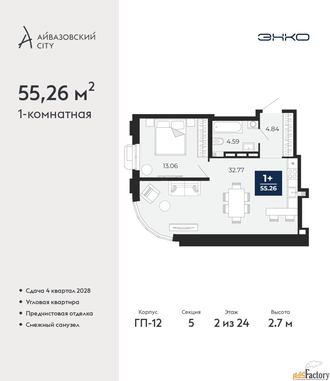 | Общая площадь (кв.м) | 55.26 |