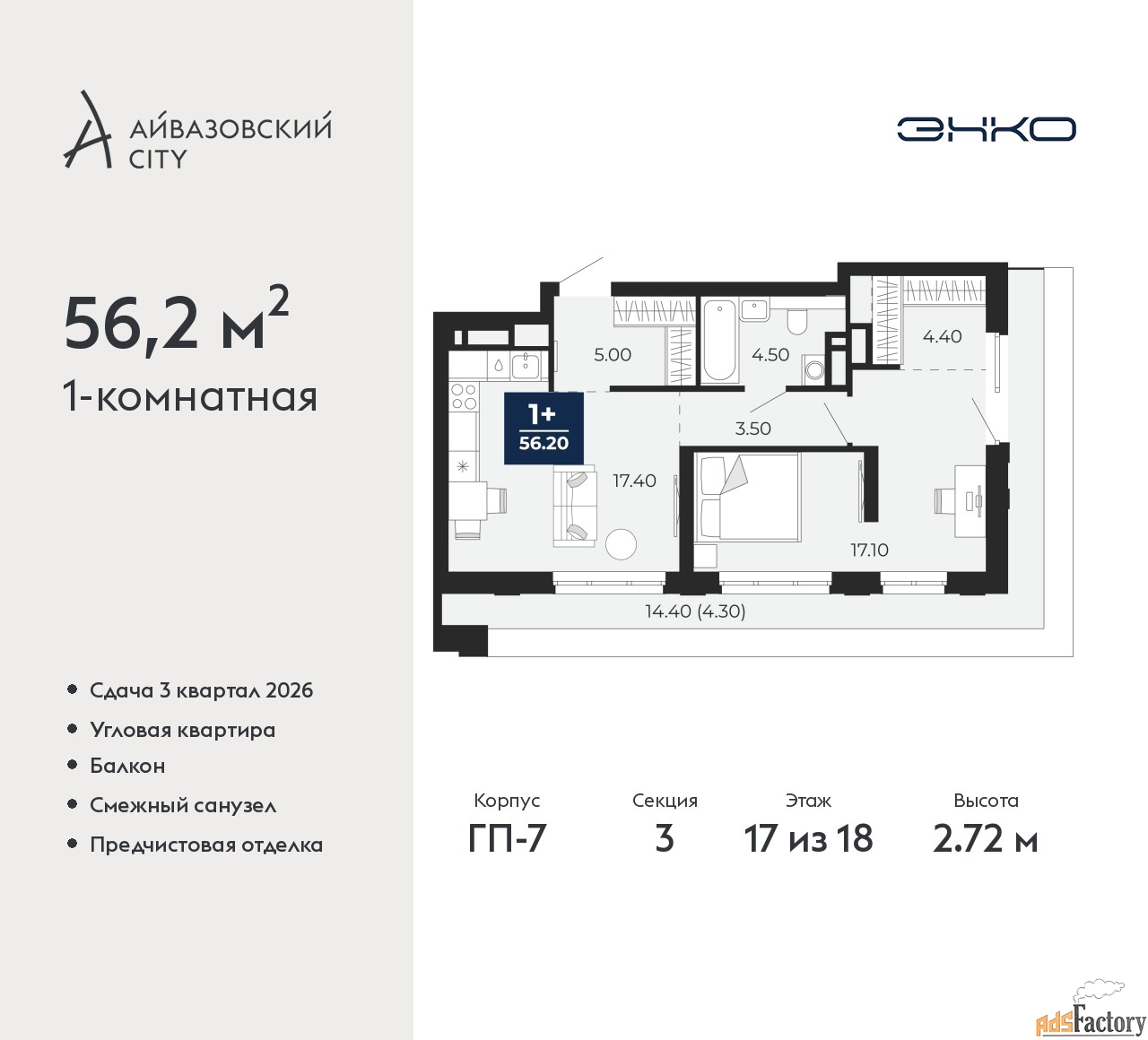 | Площадь кухни (кв.м) | 17.4 |