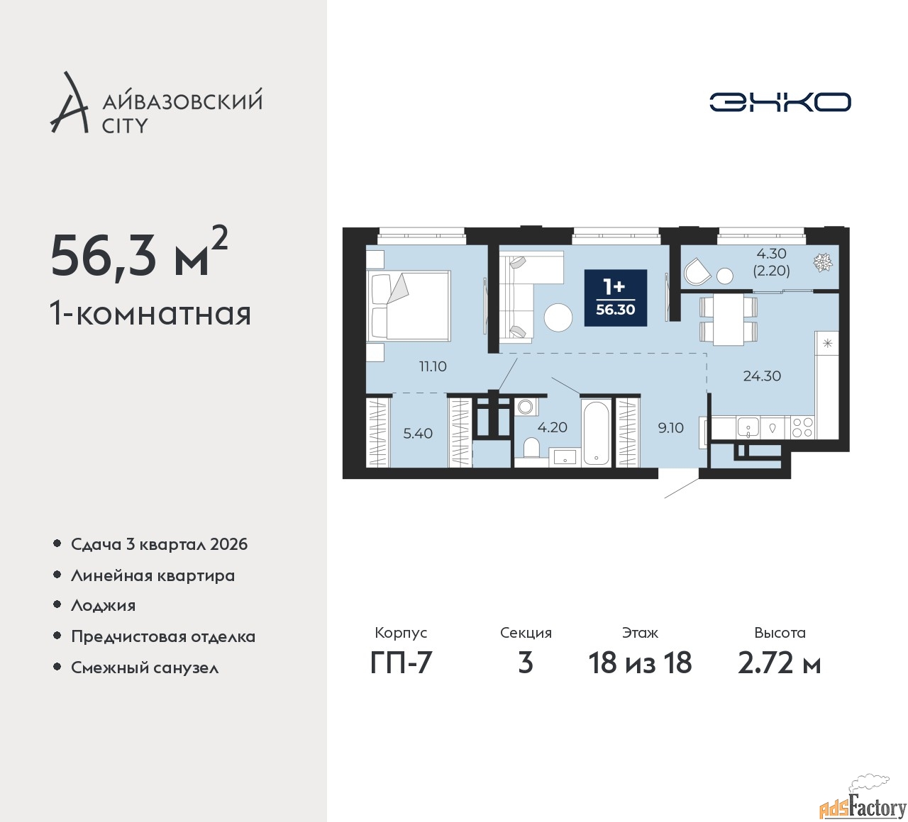 Дом монолитный, многоподъездный, переменной этажности, от 9 до 24 этажей. Квартира находится в 3-й секции высотой 18 этажей в корпусе ГП-7. На этаже 5 квартир. В подъезде 1 пассажирский и 2 грузовых лифта. Окончание строительства - 3 квартал 2026 года. Оформление сделки по договору долевого участия.