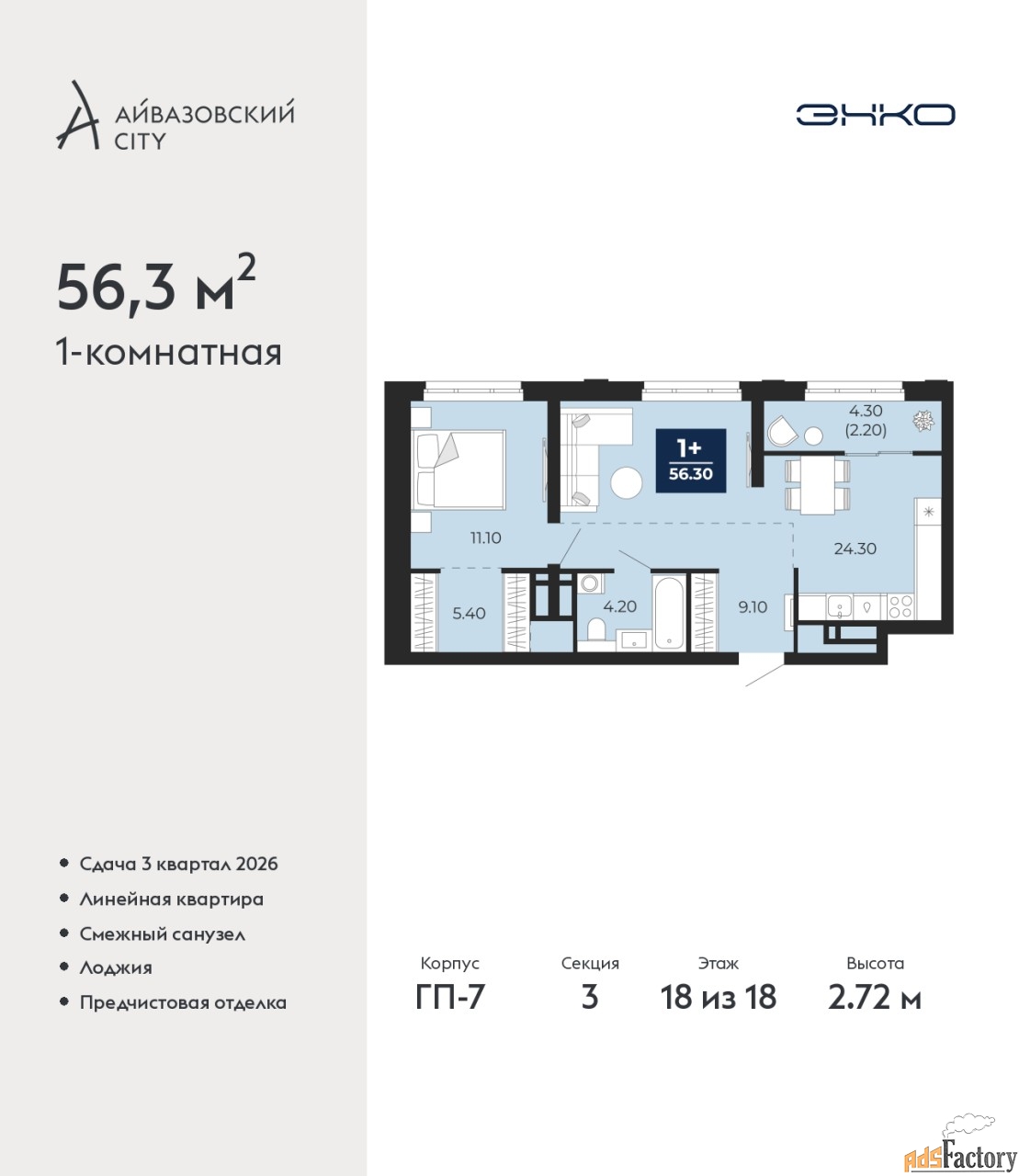 Дом монолитный, многоподъездный, переменной этажности, от 9 до 24 этажей. Квартира находится в 3-й секции высотой 18 этажей в корпусе ГП-7. На этаже 5 квартир. В подъезде 1 пассажирский и 2 грузовых лифта. Окончание строительства - 3 квартал 2026 года. Оформление сделки по договору долевого участия.
