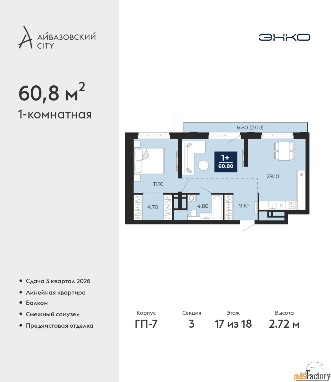| Общая площадь (кв.м) | 60.8 |