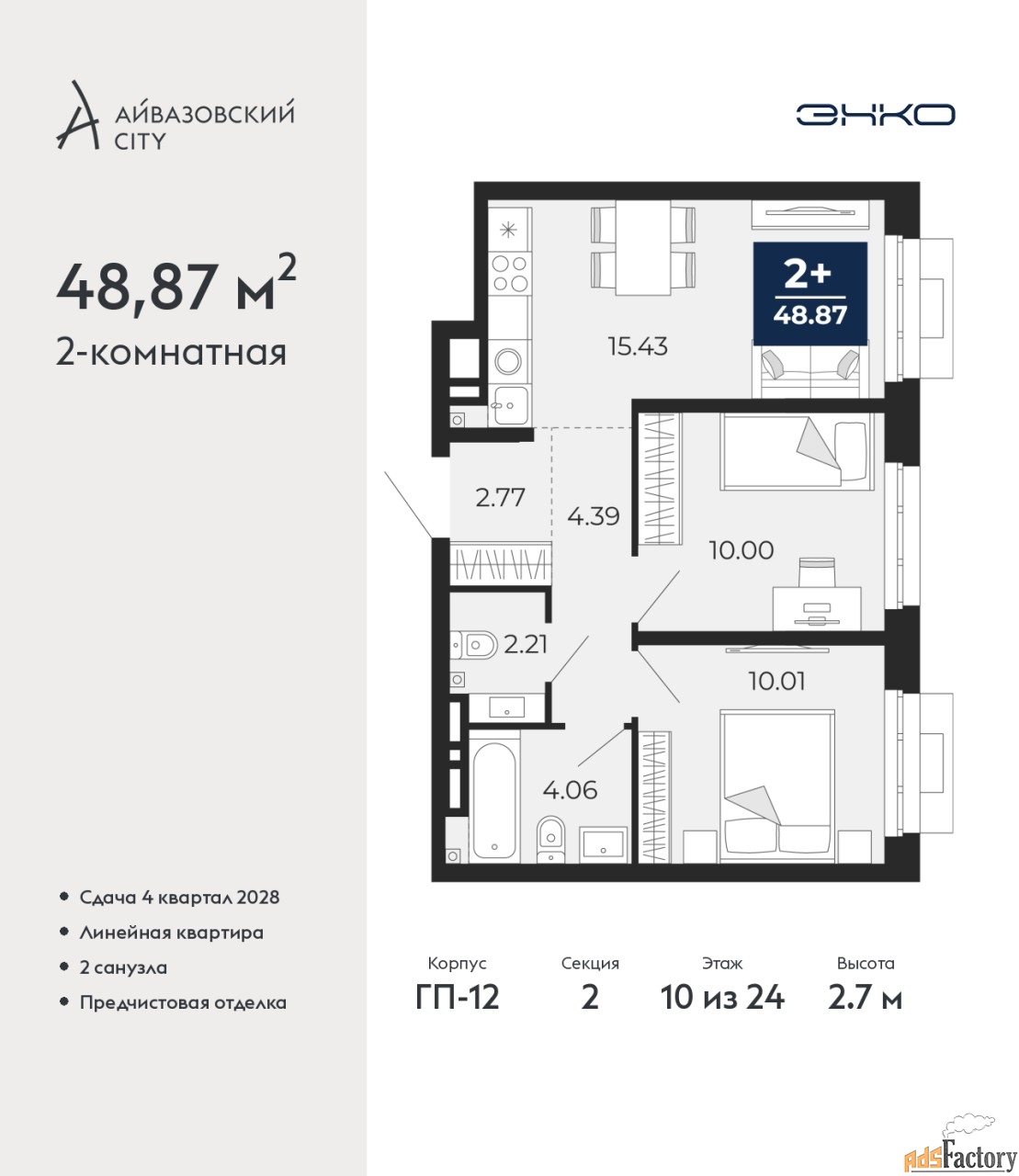 | Высота потолков (м.) | 2.7 |
