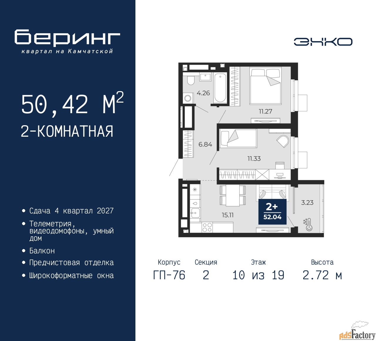 | Высота потолков (м.) | 2.72 |