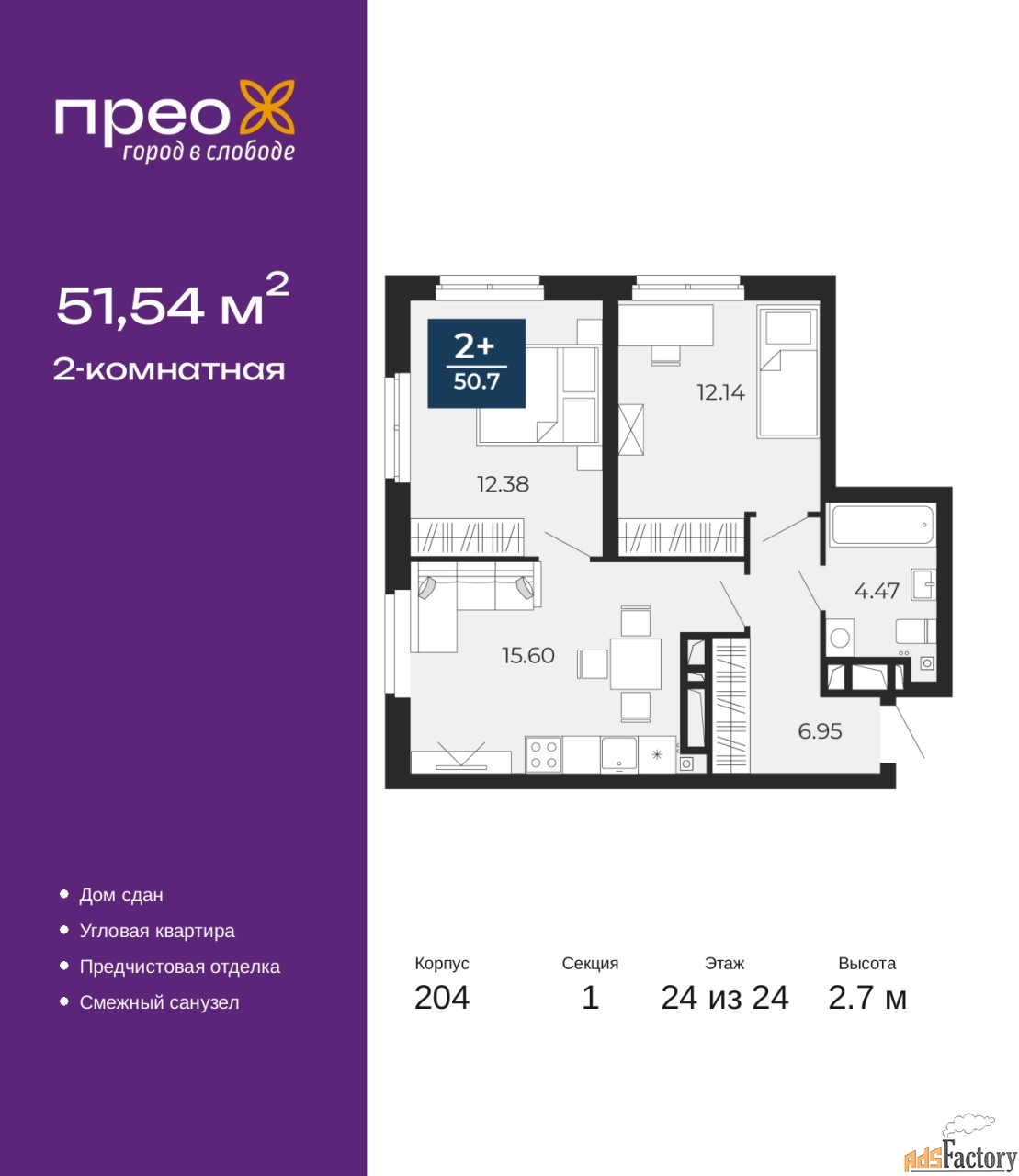 Квартира находится в корпусе 204. Дом монолитный, одноподъездный, высотой 24 этажа. На этаже 14 квартир. В подъезде 2 грузовых лифта. Строительство окончено, дом сдан в 4 квартале 2024 года. Оформление сделки по договору купли-продажи.