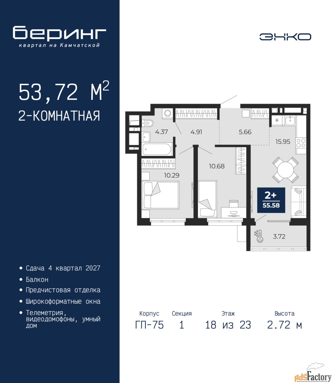 Дом монолитный, многоподъездный, переменной этажности, от 17 до 24 этажей. Квартира находится в 1-й секции высотой 23 этажа в корпусе ГП-75. На этаже 8 квартир. В подъезде 2 пассажирских и 1 грузовой лифт. Окончание строительства - 4 квартал 2027 года. Оформление сделки по договору долевого участия.
