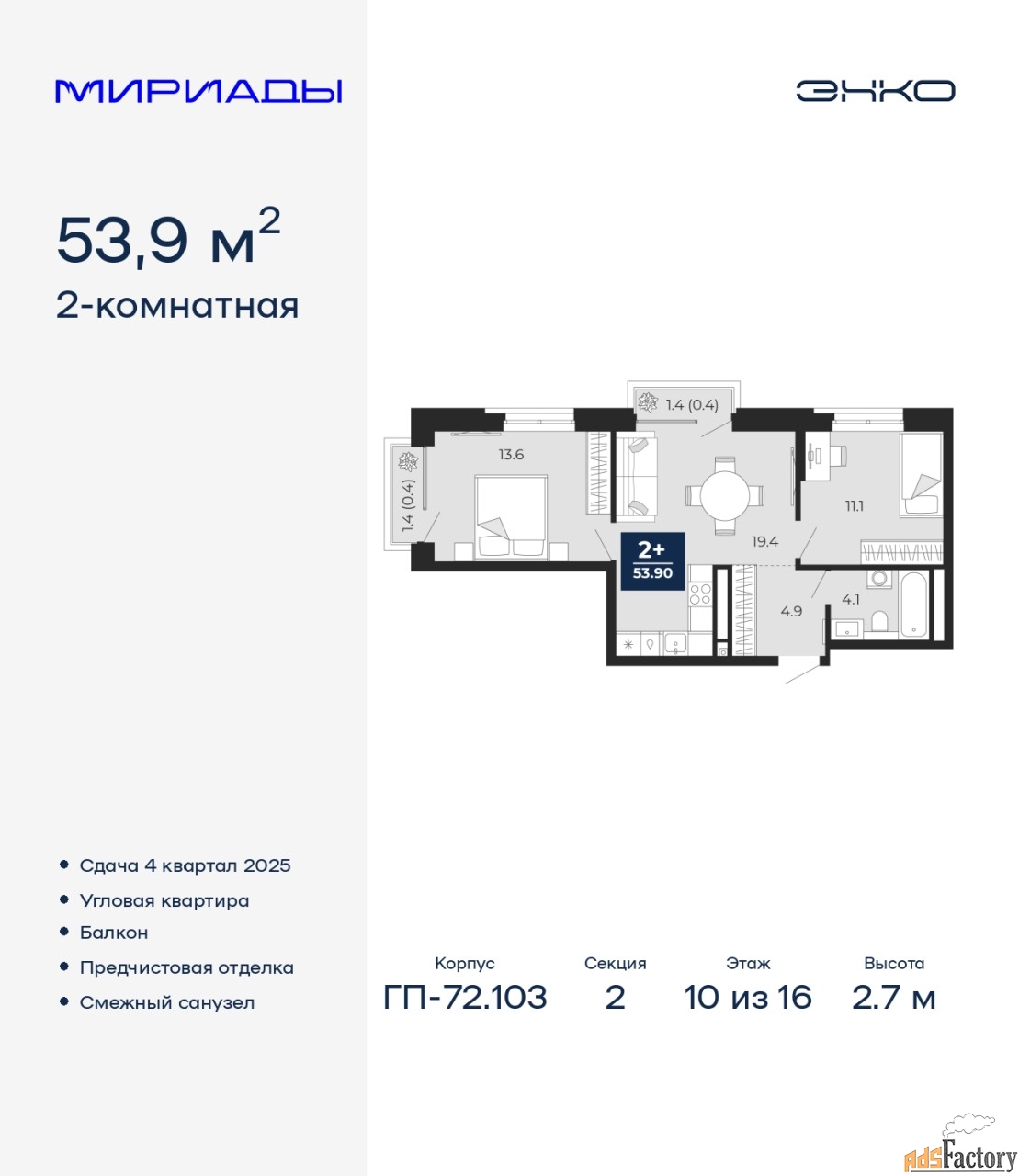 | Общая площадь (кв.м) | 53.9 |