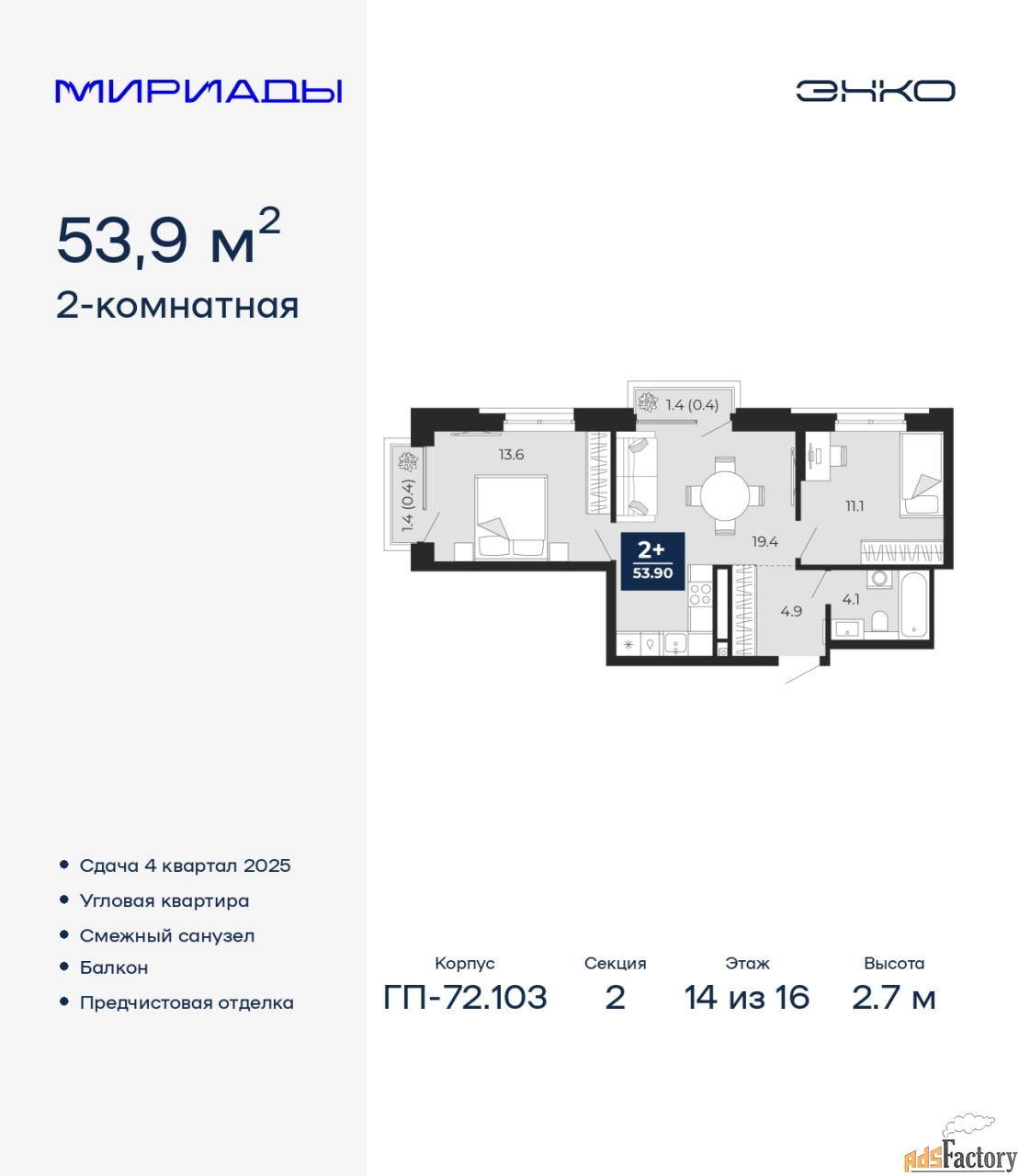 Дом монолитный, трехподъездный, переменной этажности, от 14 до 16 этажей. Квартира находится во 2-й секции высотой 16 этажей в корпусе ГП-72.103. На этаже 6 квартир. В подъезде 1 пассажирский и 1 грузовой лифт. Окончание строительства - 4 квартал 2025 года. Оформление сделки по договору долевого участия.