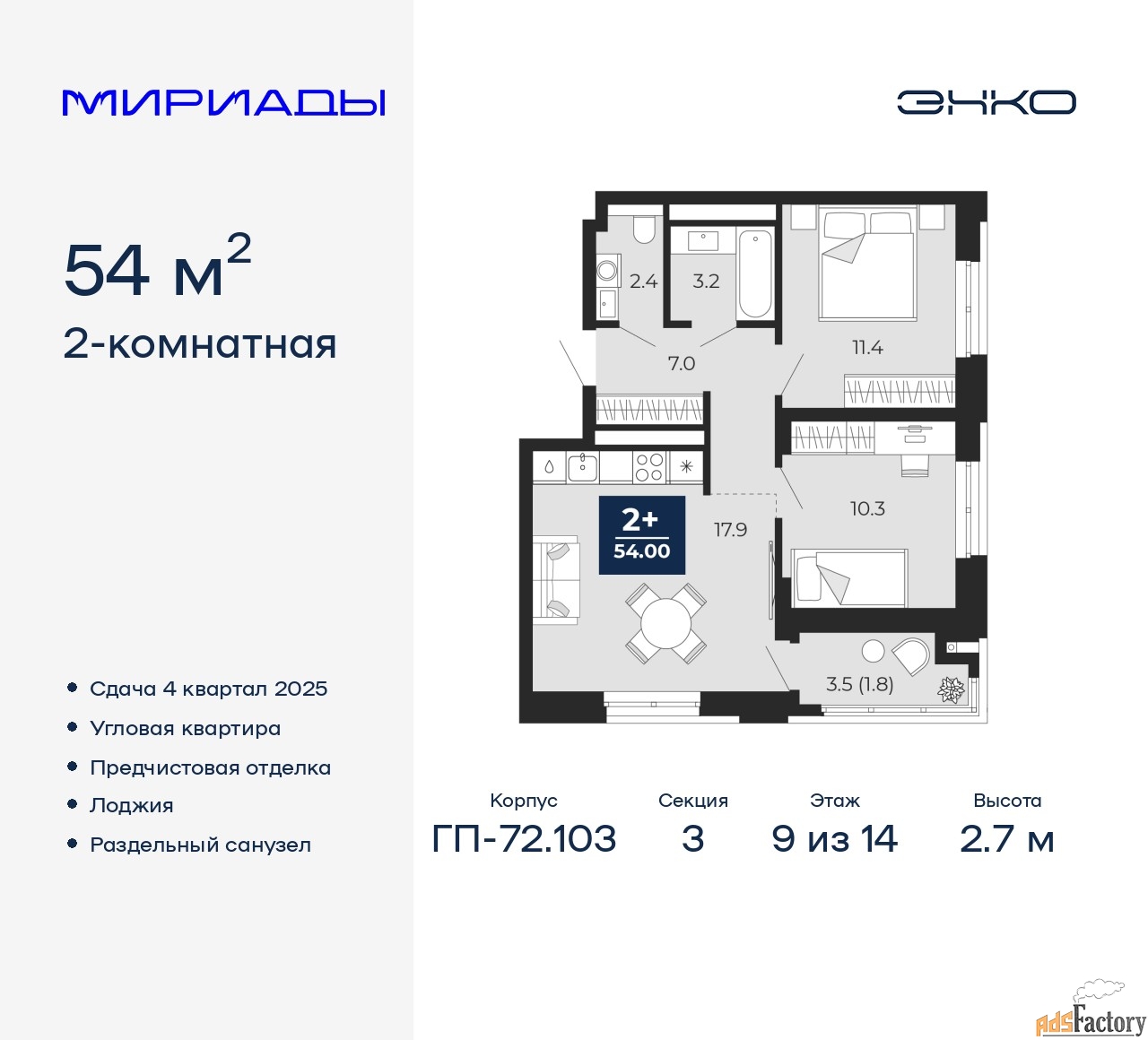 | Общая площадь (кв.м) | 54 |