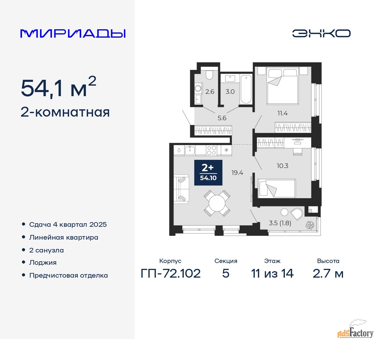 Дом монолитный, многоподъездный, переменной этажности, от 14 до 16 этажей. Квартира находится в 5-й секции высотой 14 этажей в корпусе ГП-72.102. На этаже 8 квартир. В подъезде 1 пассажирский и 1 грузовой лифт. Окончание строительства - 4 квартал 2025 года. Оформление сделки по договору долевого участия.