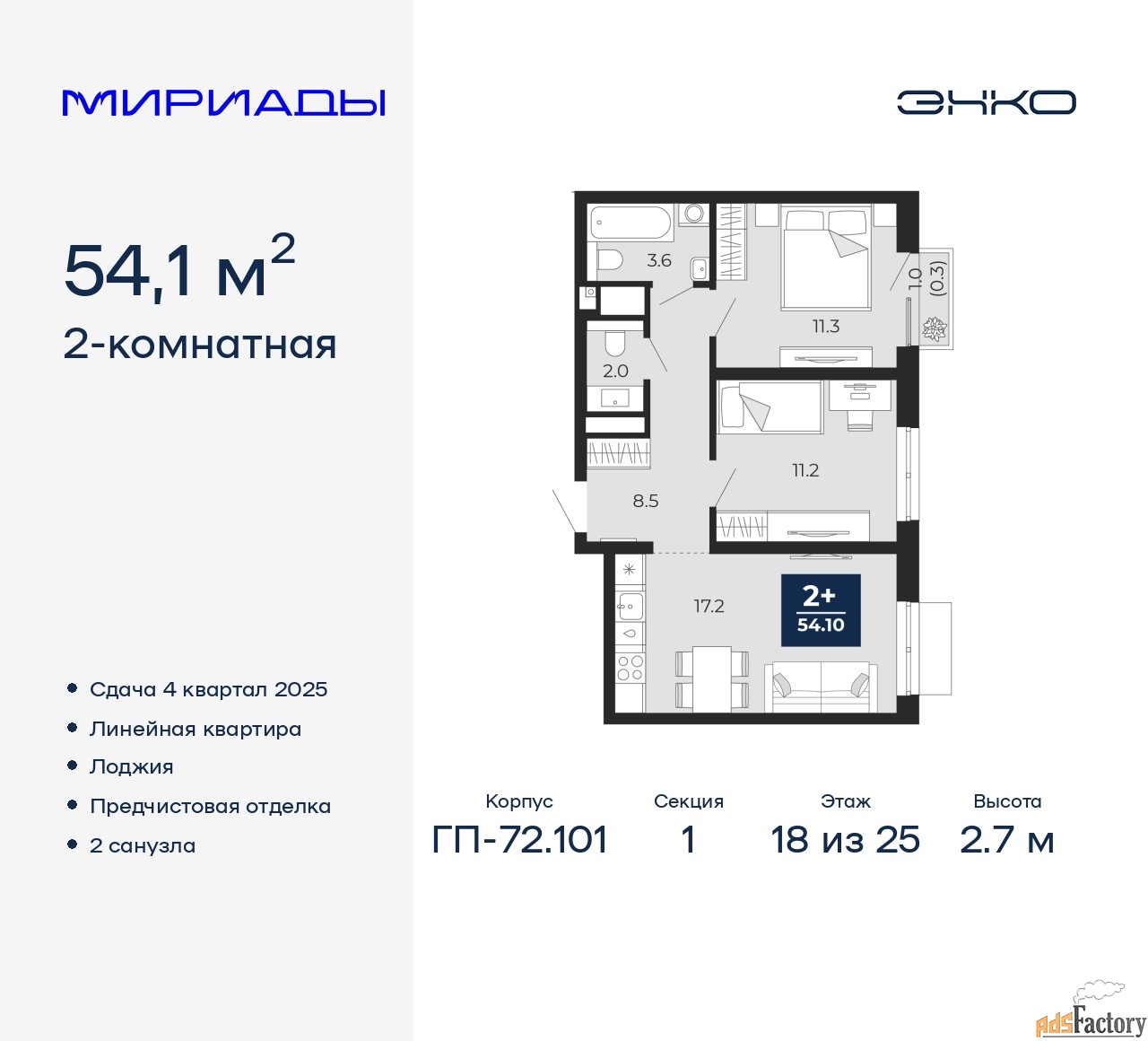 Квартира находится в корпусе ГП-72.101. Дом монолитный, одноподъездный, высотой 25 этажей. На этаже 8 квартир. В подъезде 2 пассажирских и 1 грузовой лифт. Окончание строительства - 4 квартал 2025 года. Оформление сделки по договору долевого участия.
