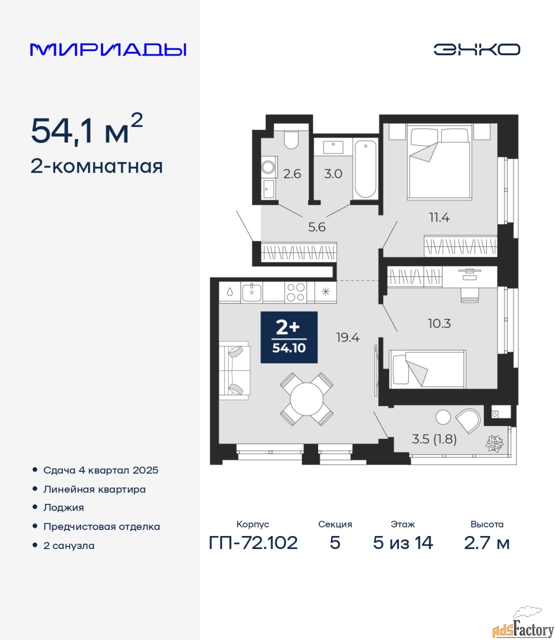 Дом монолитный, многоподъездный, переменной этажности, от 14 до 16 этажей. Квартира находится в 5-й секции высотой 14 этажей в корпусе ГП-72.102. На этаже 8 квартир. В подъезде 1 пассажирский и 1 грузовой лифт. Окончание строительства - 1 квартал 2026 года. Оформление сделки по договору долевого участия.