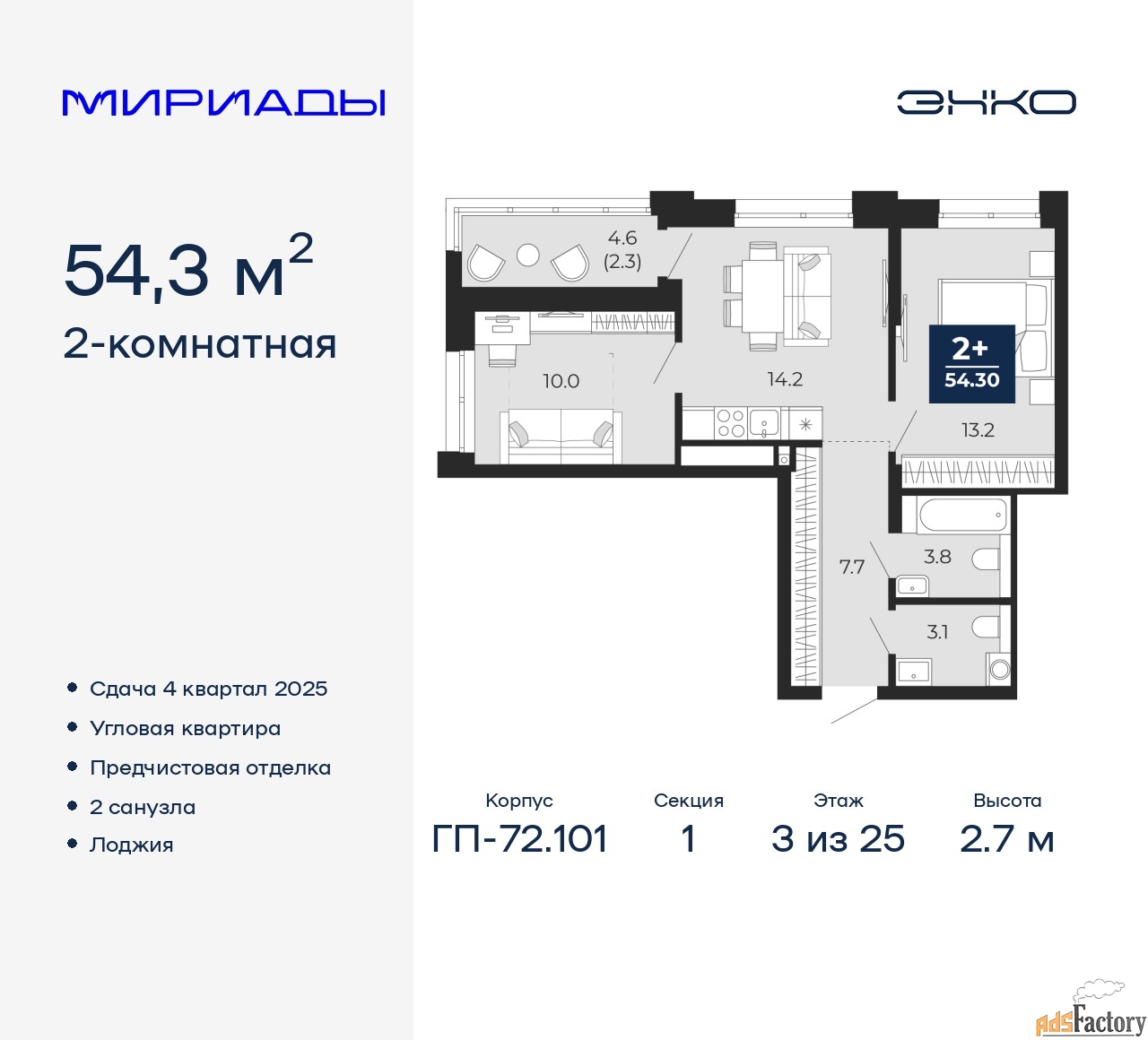 | Общая площадь (кв.м) | 54.3 |