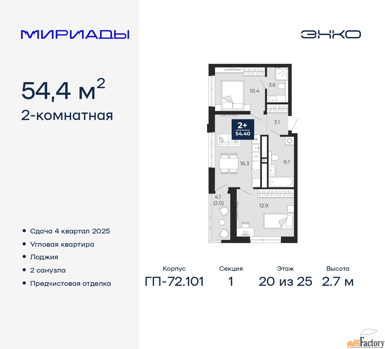 Квартира находится в корпусе ГП-72.101. Дом монолитный, одноподъездный, высотой 25 этажей. На этаже 8 квартир. В подъезде 2 пассажирских и 1 грузовой лифт. Окончание строительства - 4 квартал 2025 года. Оформление сделки по договору долевого участия.